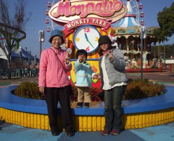 今回は私の最悪の日でした。朝起きたらやはり体調不良なので囲碁クラブはお休み。耳鼻咽喉科は休みだし、昨日の夜孫からハイチュウを貰って食べていたら奥歯に詰めたのがまた取れてしまいました。今度は右の奥・・・大人しくしていれば良いものを娘と孫達が岐阜のおばあちゃんとモンキーパークに行くというので尾張パークウェイを通って送り届けました。その帰り、小牧四季の森の近くでガシャンと何かに当たった音。暫く走ってから左側のサイドミラーが曲がっているのに気が付きました。オートで戻したら戻ったのでそのまま家に戻って見たら見事ミラーのカバーが全壊。(沈)車体はなんとも無いので何に当たったのか不明です。車屋さんに電話して持って行きました。修理代の見積は3万5千円。保険会社にも電話、全額保証されるようです。修理は明日出来るようです。碁会所の近くに来たのでそのまま碁会所へ。M藤さんに白で1勝4敗。M野さんに4子置いて1勝1敗。II田さんに白で3連敗。今日は良いとこ無しでした。4時前に娘からお迎えコール。途中まで送ってきて貰ったので、桃花台の先のサークルKで落ち合いピックアップ。長男の撮ったモンキーパークの写真夜はクリスマスイブなので夕食の後ケーキを頂きました。折角のクリスマスイブなのにあまり良い日では有りませんでした・・・