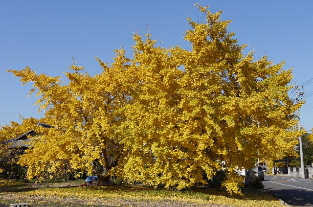 11月30日に行った祖父江町の銀杏を掲載します。名古屋鉄道尾西線の山崎駅(無人駅)から歩いて2分くらいの所に裕専寺が有り29日迄の祭りでは駐車禁止になっていた場所に駐車出来ました。無人駅なので付近にはコンビニなどのお店は全然有りません。行く機会が有りましたらお弁当持参を推薦します。見て廻ったのは駅周辺だけですが一時間位は掛かりました。女房の居る左側が山崎駅になります女房の後ろに皇帝ダリアと銀杏皇帝ダリアが咲いていたのはこの樹の左側です女房が座っている所でお弁当を頂きました先に進んで裕専寺の山門本堂と稲沢市指定の天然記念物の銀杏の木この樹の葉は落ちていました根元に有ったモミジ後は駅近辺の大きな樹を撮ってきました銀杏見物を終わって祖父江善光寺に向かう途中で名鉄の電車は赤色なんですが、銀杏と一緒に撮った写真がよく掲載されます。1人で行ったら時間を掛けて撮ったのですがねぇ~明日は、ここから車で10分くらいの祖父江善光寺を掲載します。この世で拝める極楽もありましたよぉ~
