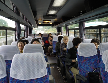 小田原で合流の?バスには大阪からの深沢さんと二人が最後。 みなさん既にアルコールが入って大騒ぎ。 男性は数人女性はほとんど顔と名前が判りません。 夜の宴会で順次思い出しましょう。