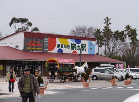 ハーブ&ローズガーデンを見て土産の干物を購入 伊豆高原旅の駅でトイレ休憩 河津桜はまだ二分咲きとのことでパスされるようです 昼食先まで直行です