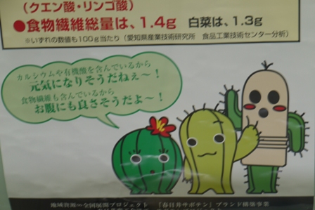暇のもので・・高蔵寺駅のコンコースにあるギャラリーの棚に掲載されている春日井市のユルキャラ 春代(はるよ)、日丸(にちまる)、井之介(いのすけ)頭文字で春日井サボテンの実生生産日本一と言う事で商工会議所が制定春日井市のユルキャラは 道風くん だそうです