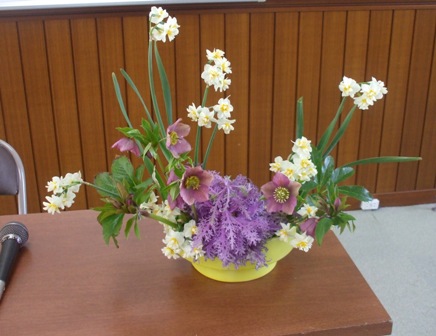 今日は3月度の華の樹会(老人クラブ)例会。出かけようか否か悩んでいましたが・・洗濯物を干してから気晴らしに出かけることにしました。地震・津波は如何ともしがたいが福島原発の事故には腹が立ちますね。今mでの安全過信は何だったのでしょう?10時からの例会に先立つ会長さんの挨拶に、人間天災には耐えられるが人災には耐えられない、と言う言葉がありましたがまさに其のとおりです。被災者の皆さん頑張ってください。昼まではアマゾン移住後45年の苦労と成功を泣ける話・笑える話・今の日本人を叱咤激励する言葉で楽しく話して戴いた 長坂 優 さんの講演。コミュニティ岩西との共催と言う事で出席者は50名以上居ました。演壇に飾られた生け花クリスマスローズのアップ色々知らなかった先人の苦労とブラジルに親日家が多い理由など、日本人の粘り強さ、真面目さ、頑張り強さなど欧米人には無い特質を持っていることを話して頂きました。日本人には今起きている災害を乗り越えられるDNAを持っていることを認識出来、話を聞きに行って良かったと思いました。講演が終わって昼食昼食からは華の樹会の会員さんだけです。昼食後はお誕生会とカラオケなので、食事してからご無礼しました。少し気分が晴れたので碁会所へ。Y田さんに白で1勝5敗。F井さんに3子置いて勝ち。7時前に帰宅しました。今日は女房の誕生日なので帰りに桃花亭(とうかてい)に寄ってケーキを買って帰りました。悲しいTVを見ながらの案常備になってしまいました。
