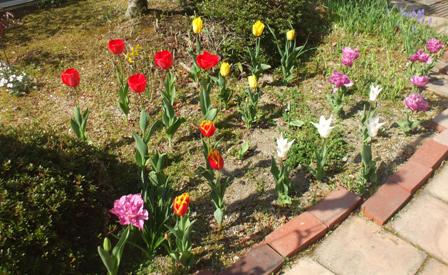 庭のチューリップが咲き揃いました。花の色や形が違うものですね今日の桜は・・また夜に掲載します。