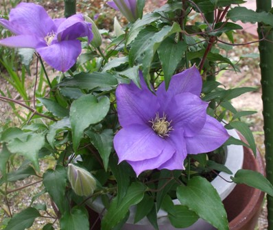 朝は結婚式に招待されている息子を残して透析に。今日の透析も問題無し。帰りにつつじの丘(私が勝手に名づけただけ)の開花状況を確認に・・陽当たりの良いところはポツポツ咲いていましたが見頃はもう少し先のようです。ついでにバームクーヘンを作っている工場で不具合品を安く売っているので買って帰ろうと寄りましたが・・お休みでしたね。更に白山神社近くのお宅できれいな藤棚が・・写真撮りましたが・・パソコンに落とそうとしたら・・メモリーカードのフォーマットが必要です・・なんで?・・写真は後日再撮影ですね。で今日もお庭の花紫のクレマチスも咲きました 名前を調べるの面倒なので名無しです。女房は夕食の支度中なので余計なことを聞いて藪蛇にならないように・・