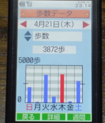 先週は透析の日はおとなしくしていました。証拠写真です。 一番歩いても4000歩までいっていませんが・・