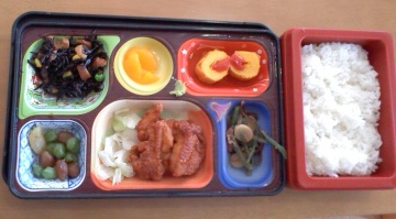 今日の透析は除水1.6kg。月曜日に300g残した割には優秀な成績・・と言うよりは夜の暑さで寝汗をかいただけ?昨日も夜9時過ぎに3000歩ほど歩きましたがこれが良かったかも。今日は血圧もアラームが鳴らずに済みました。透析が終わり病院でのお弁当デビューです。(携帯写真を回転)煮豆、白身魚のあんかけ、温野菜のサラダ、キンピラ牛蒡、果物、蒟蒻炒め、ご飯200g病院食と同じですね。基本的に食べ物制限はありませんがカリウム、リンを抑えて調理します。なので野菜は基本的に茹でてあります。果物もカリウム、リンを減らした缶詰です。メニュー表見たけど総カロリーが書いてありませんでした。夕食については考慮中。家に戻ってからごろ寝。最近透析の後でも眠れます・・途中で目が覚めたとき透析中かと間違えてしまいました・・