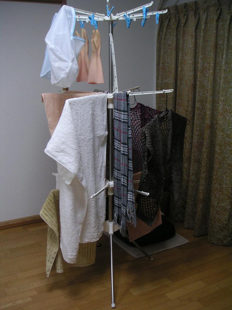雨が降り出しました。今日一日は持つはずだったのに・・・がっくりです。しかし、乾燥注意報が数十日連続で発令中でしたので、恵みの雨ではあります。この雨が降り終わると、また乾燥の日が続くそうで。喉が一番にやられるので、水分をこまめに摂ったり、うがいで潤したり寒くて乾燥の冬を何とか乗り切りたいと思います。 ・・・・・・・・・・・・・・・・・・・・・・・・・・・・・・・・・・・・・・・・・ そんな状況に、頼りなる助っ人がコレ。夕方冷たくなった洗濯物、生乾きの状態、雨の日など、毎日活躍してくれています。これは、確か、昨秋頃に、コーナンの広告を見て、通常1,980円→1,280円で購入しました。以前までは、各部屋のサンにハンガーをかけて干していたのですが、人が通るたびに落ちたりして、洗濯したんだか、床掃除してんだか、分かんないそんな日々の繰り返しでした。何か、手軽で、ワタシが動かせるほどの軽いものをーと模索した中、結局これに行き着きました。『1,280円なら失敗してもいいだろう。』最初は、そう言いながら買ったものです。何より、室内の保湿効果も兼ね備えているので、かっこ悪いですが、リビングに置いて、ワタシの喉のケアもしてくれています。この冬の大きな助っ人です。これが乾けば、第二弾がバルコニーでスタンバイしております。 ・・・・・・・・・・・・・・・・・・・・・・・・・・・・・・・・・・・・・・・・・今日は、オットは名古屋へ出張。駅前で目ぼしい土産をリサーチしようとすると、『車やで!』。げ!車!?諦めました。