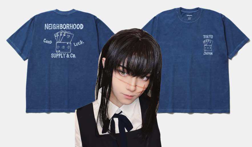コットン天竺のオリジナルボディーをベースに、顔料染め加工を施したショートスリーブTシャツ。左胸と背面にグラフィックをプリント。ワンウォッシュ。