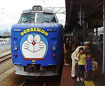 車輛も凄いのです。タネ車は781系電車なのですが、車体の至る所にドラえもん、とか、のび太のイラストが描かれています。
