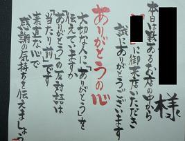 休みでかばんの中を整理していたら、出てきた一枚の紙。先日、とある夜に営業と予約して行ったお店の「箸置き」の下にあった紙なんですが。。後半部分に「ありがとうの心」ってあります。まぁ、それはいいとしても「ありがとう」の反対語は「当たり前」?。たぶん、その時も気になってかばんに入れたと思うのですが、知らなかったなぁ。また一つ賢くなった八兵衛です。さぁ、あと二日出社すれば「8連休の夏休み」です。ぼちぼち予定が埋まってきています。