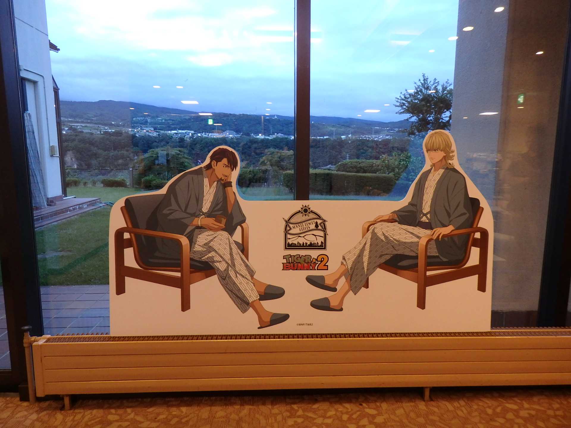 シルバーウィークの最終に当たる9/23・24、虎廃仲間のSちゃんと一緒に、軽井沢で開催のタイバニコラボの旅に行ってきました!9/23現地集合で、私の方は東京から軽井沢に。新幹線で1時間ちょっと。お天気は、朝自宅を出るときは小雨でしたが、軽井沢は雲が多いもののなんとか晴れ!Sちゃんと無事合流して、駅前のお蕎麦屋さんで軽くランチをしてから、サイクリングで回ることに。ところが、ここ数十年自転車乗っていなかった私、電動アシストタイプをお借りしていたのですが、途中の急な坂道でバランスを崩して転倒。幸いうまく倒れたので、酷い出血や痛みはないようなので、そのまま一旦目的地の市場に。一折見て、まずはお土産の名産品やグッズを購入。気がついたら一万円超えました!今日買ったものは、明日の帰宅時間あとに届くよう手配。もう1箇所カーリング施設を回って、途中ドラッグストアに立ち寄り、店員さんに相談して、傷パッドと湿布薬を購入して、しっかり手当をしてから軽井沢駅前に。駅に行く途中で、美味しそうなチョコレートショップに立ち寄りここでもお土産のお菓子を購入。自転車返却後に旅館のある小諸へ在来線に。小諸駅に予定より早めに到着。迎えの車が来るまで周辺を散策し、5時すぎに送迎車が到着。旅館に到着して、コラボ企画のパネルに狂喜乱舞。一休み後、早速温泉に。擦り傷にも効くとのことで、怪我した右足は、しっかり傷パット(濡れてもOKなもの)していたので、露天風呂をしっかり楽しみました。7時に夕ご飯で、追加で日本酒を頼んでごちそうを堪能。かなりの量だったので、ご飯とお味噌汁はパスし、デザートはお部屋でいただくことにしました。食休みを十分取って、また軽く温泉に入り傷パットを取り替え。この日は地上波放送の最終回だったので、深夜デザートと買ってきたおつまみとビールで鑑賞。素敵な1夜を過ごしました。翌日24日は、5時すぎに目が冷め、6時ちょっと前に3回目の温泉に。Sちゃんは6時半に起きて、軽く温泉に行きました。7時に朝食、バイキング形式だったので好きなものを取って朝からもりもり食べました。チェックアウトを9時にしたので、20分ほど近くを散策。9時すぎに旅館の送迎バスに乗って小諸駅に。再び軽井沢に戻り、今日は無理せずバスでスタンプラリーの最終ポイントへ。パネル撮影やスタンプのコンプリート、待望のソフトクリームを食べて、施設内を散策。コンプリートの記念品とお買い物を済ませて、タクシーで昨日寄った市場にむかい、私は朝どれ野菜を買い込み友人も野菜と果物を大量に買い込んでました。友人と早めのランチをシェアしてとり、またタクシーに乗って軽井沢駅前にあるアウトレットモールに向かいました。新幹線までまだ時間があるので、こちらを巡って晩御飯のおかずやキズぐすり&傷パッドを私は購入。友人も40%オフの紅茶など購入して、偶然見つけたMOOMINカフェでお茶などしてから駅に向かいました15時半くらい?トイレなど済ませながら、待合室でゆっくり休み16時すぎの新幹線に乗り込み(乗る車両は別れましたが)、17時20分に東京に到着しました。友人はさらに関西方面のため、東海道新幹線に乗るため、ここでおわかれ。初日にはハプニングありましたが、思いっきり楽しんだ2日間でした。 今回泊った旅館の写真をちょっと載せときます。コラボ企画は10/31まで。軽井沢は初めてだったし、温泉も久しぶりに堪能出来て本当に良かったです。