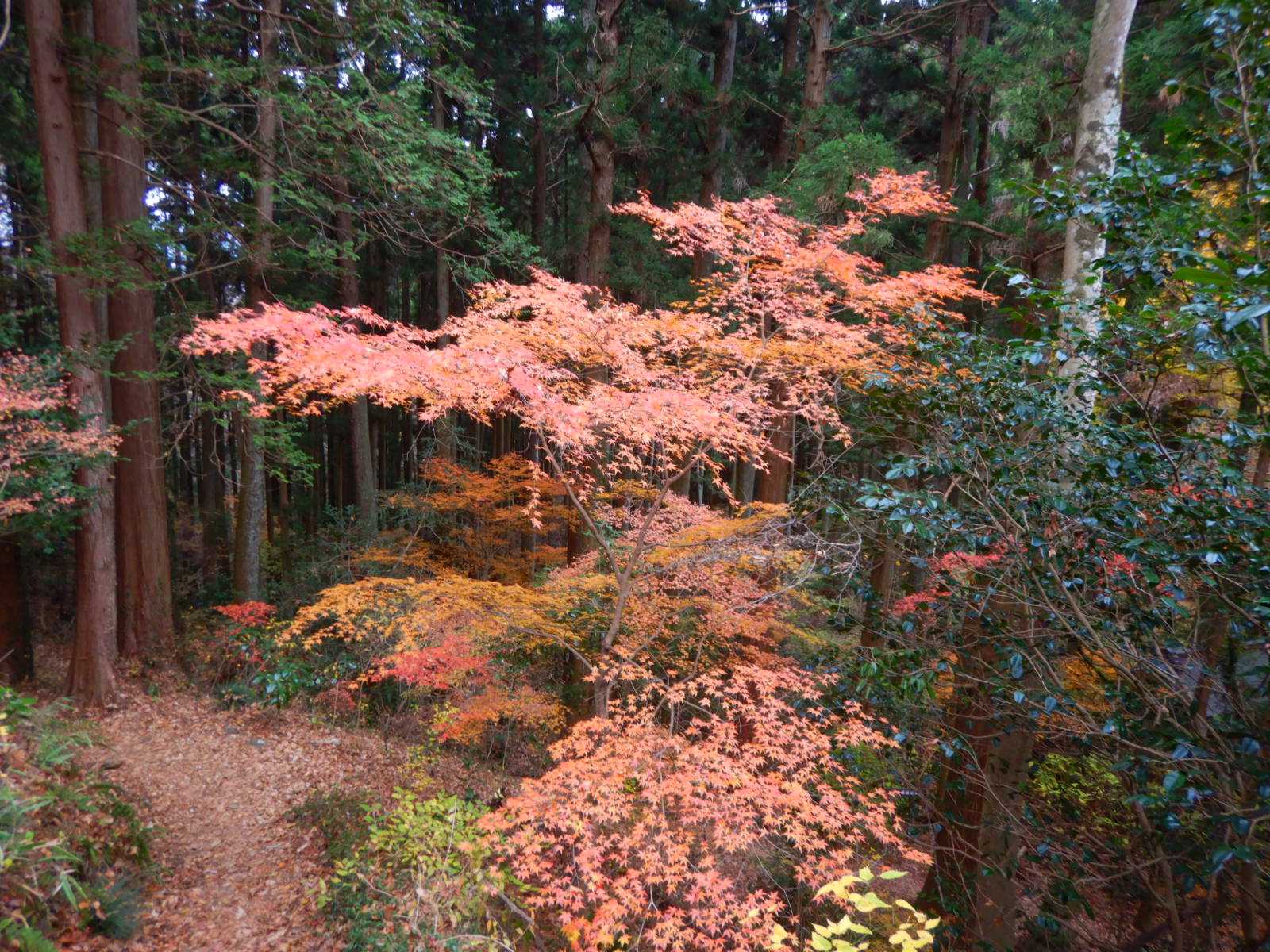 ほとんどは落ち葉になっていましたが、モミジが少しだけ残っていました。