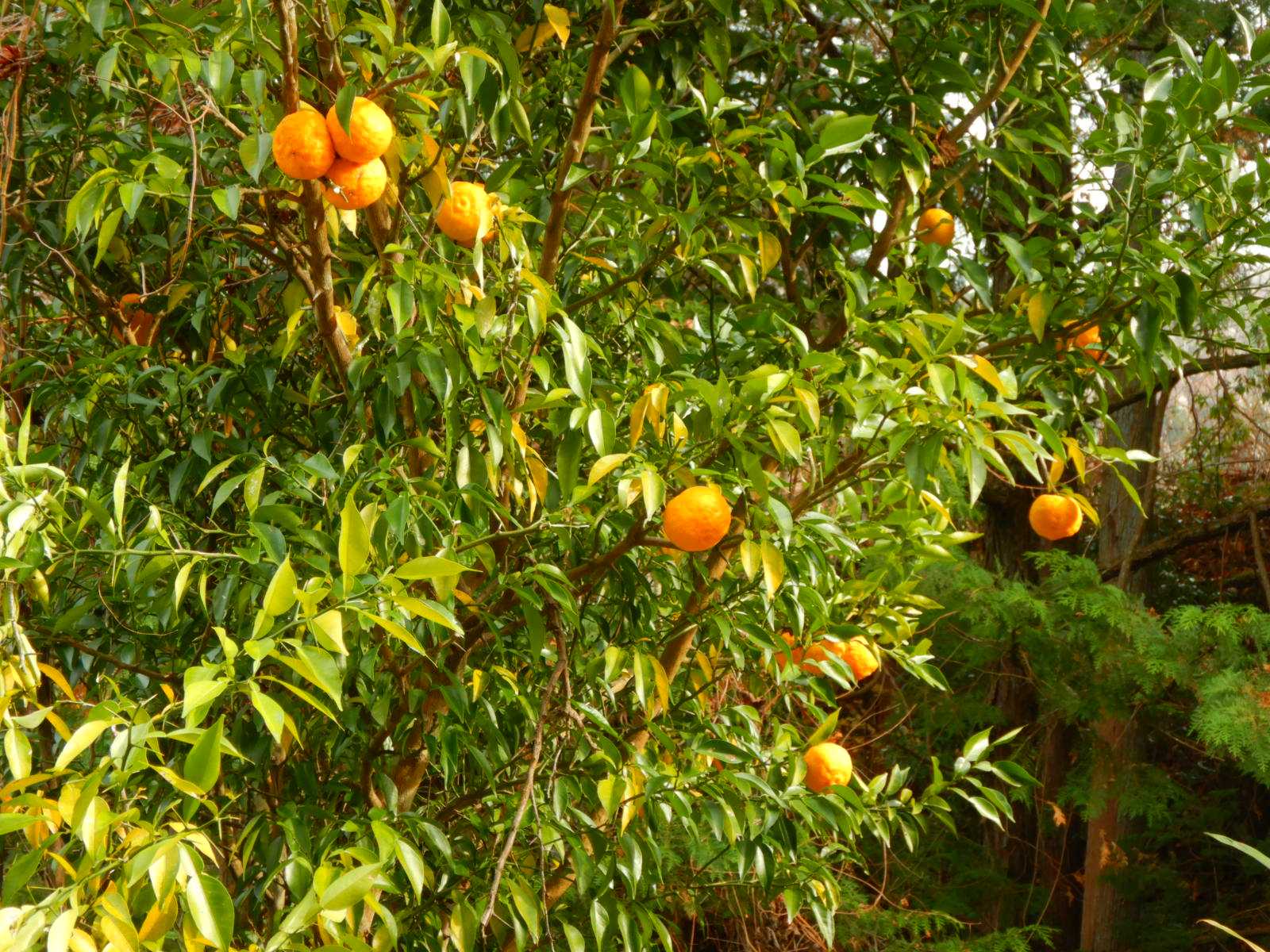 山から下り、車道を歩いていると道のそばにユズが実っていました。