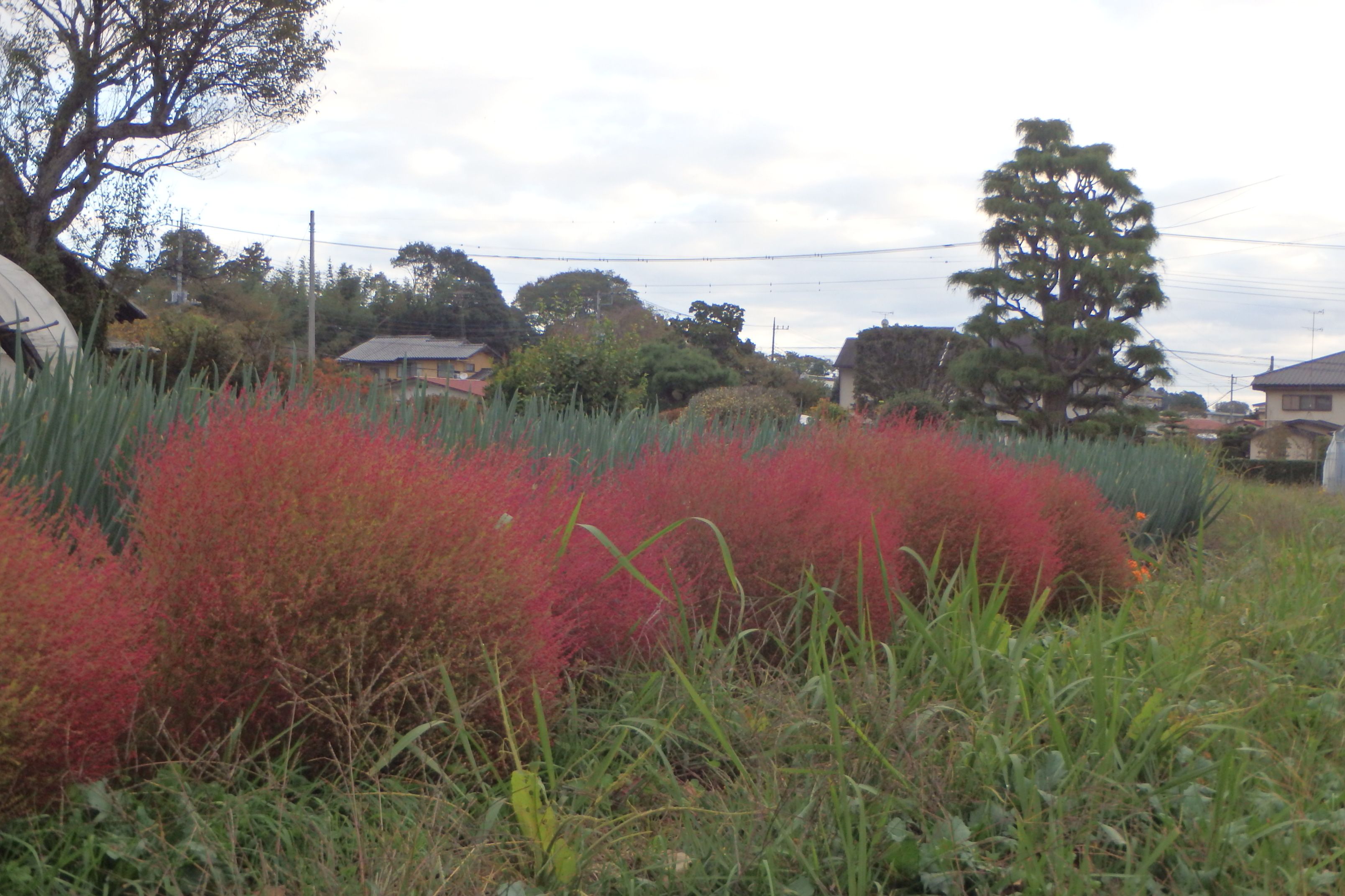 栃木北部の当地、今朝の最低気温は11.1℃と冷え込みました。畑の中のコキアが色づいてきました。身近に見られる紅葉です。百円玉ほどのお茶の花。白花のハギ、ユズの色づきはもう少し先のようです。19号台風で増水したさび川、水量も減つて濁りも治まってきたようですが、堤防が決壊した数キロ下流の80人には避難勧告が出たままのようです。南の空は曇り空ですが、北の空は晴れ間がのぞいて那須連山が見えました。災害復旧のためにも天気が安定してくれることを願いたいものです。