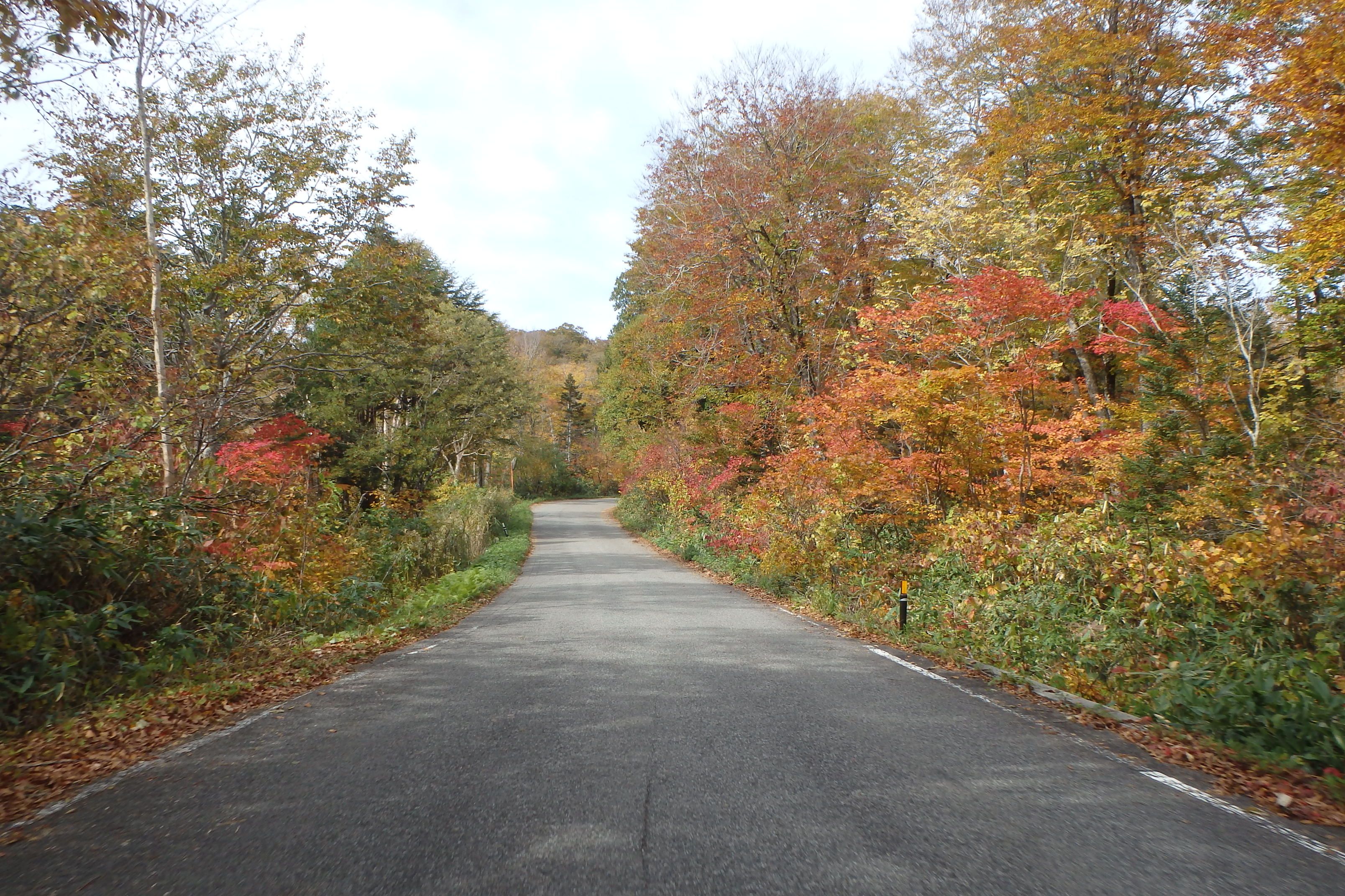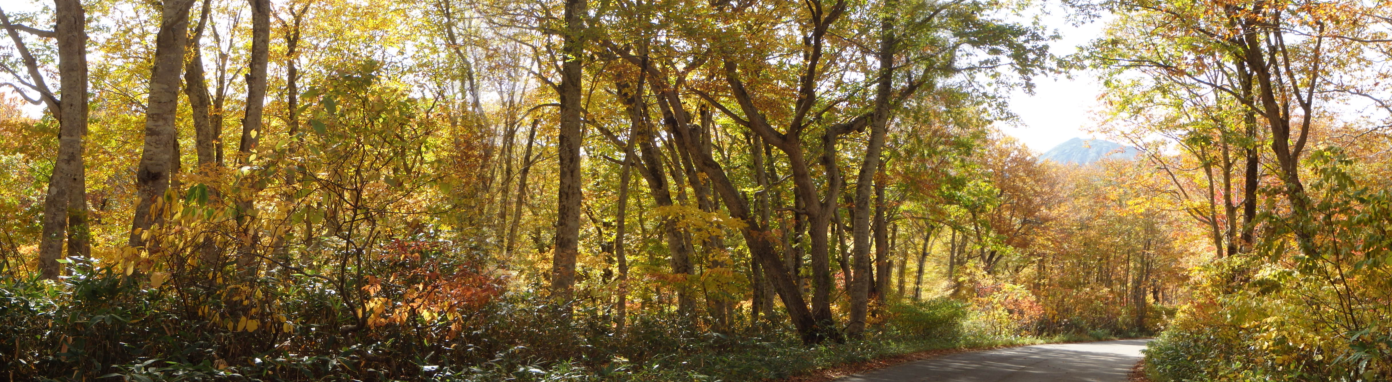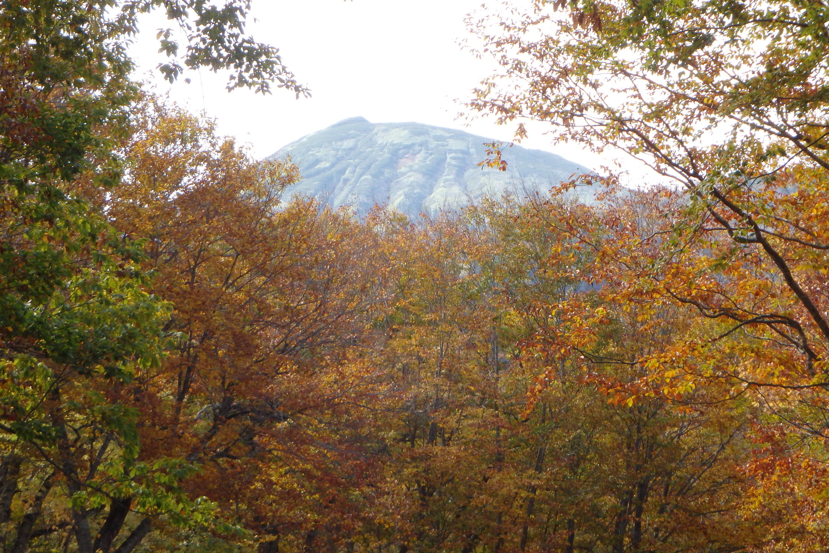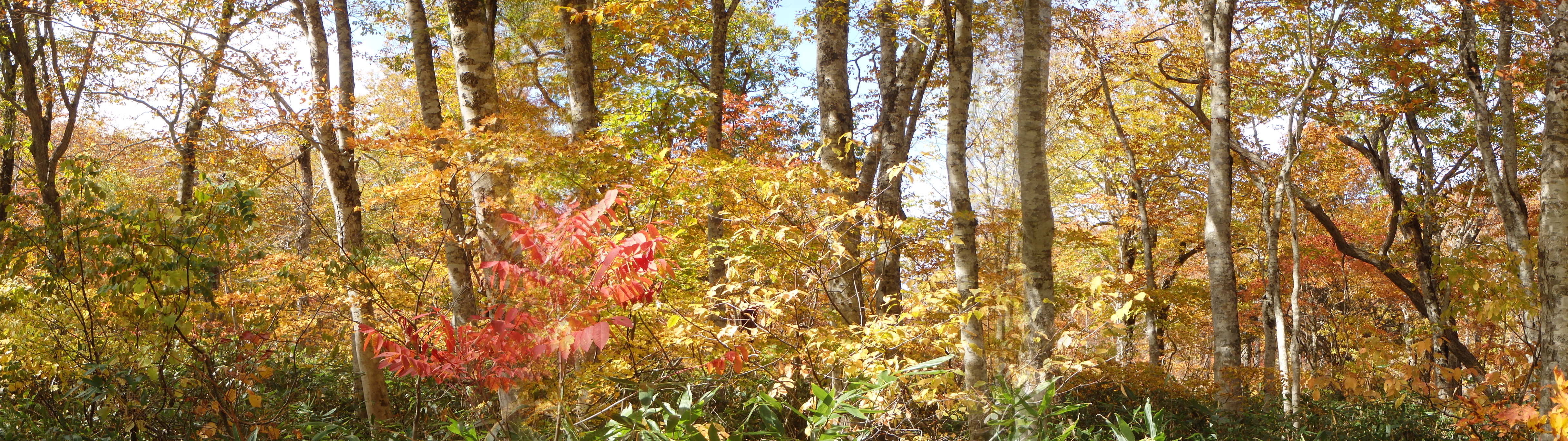 つづら折りのブナ坂を登ぼりきると、突然紅葉が見えてきました。