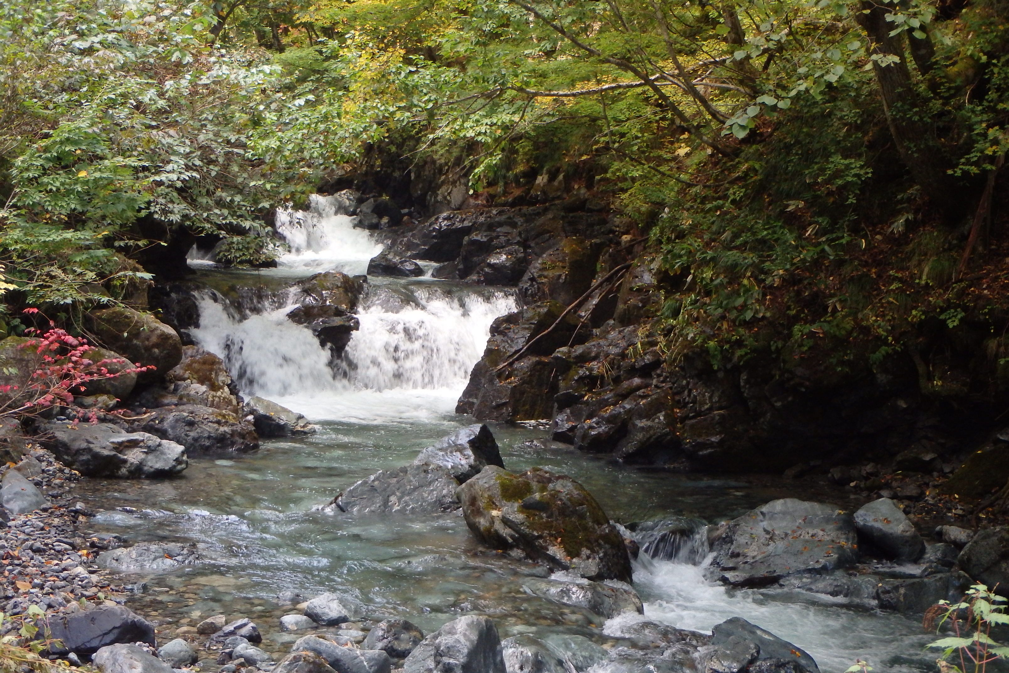 滝沢を駒ケ岳登山口の方に少し登り、流れの中にイワナを見つけてから引き返しました。