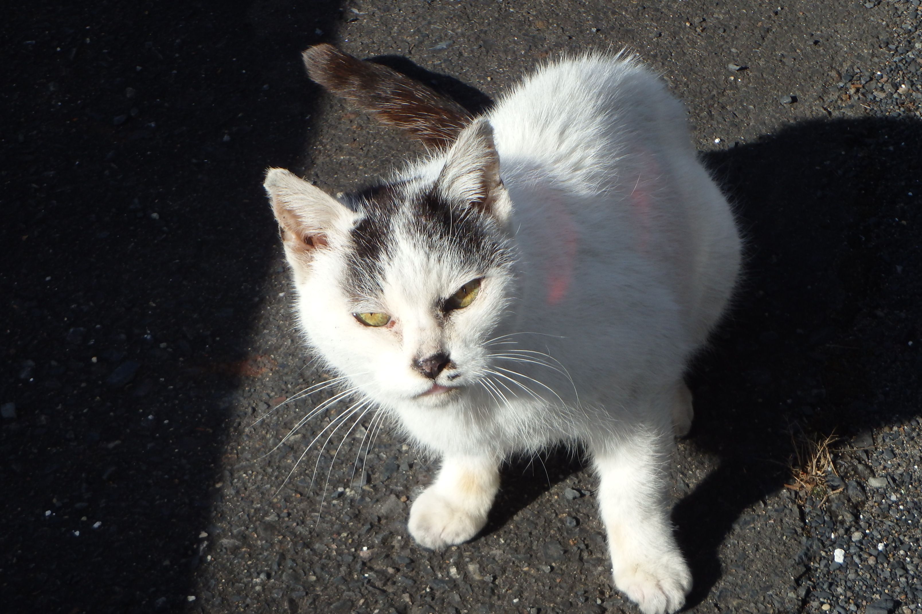 前に来た時にもこの駐車場にいた猫がミャーミャーと鳴きながら寄ってきて、少しだけ癒されました。