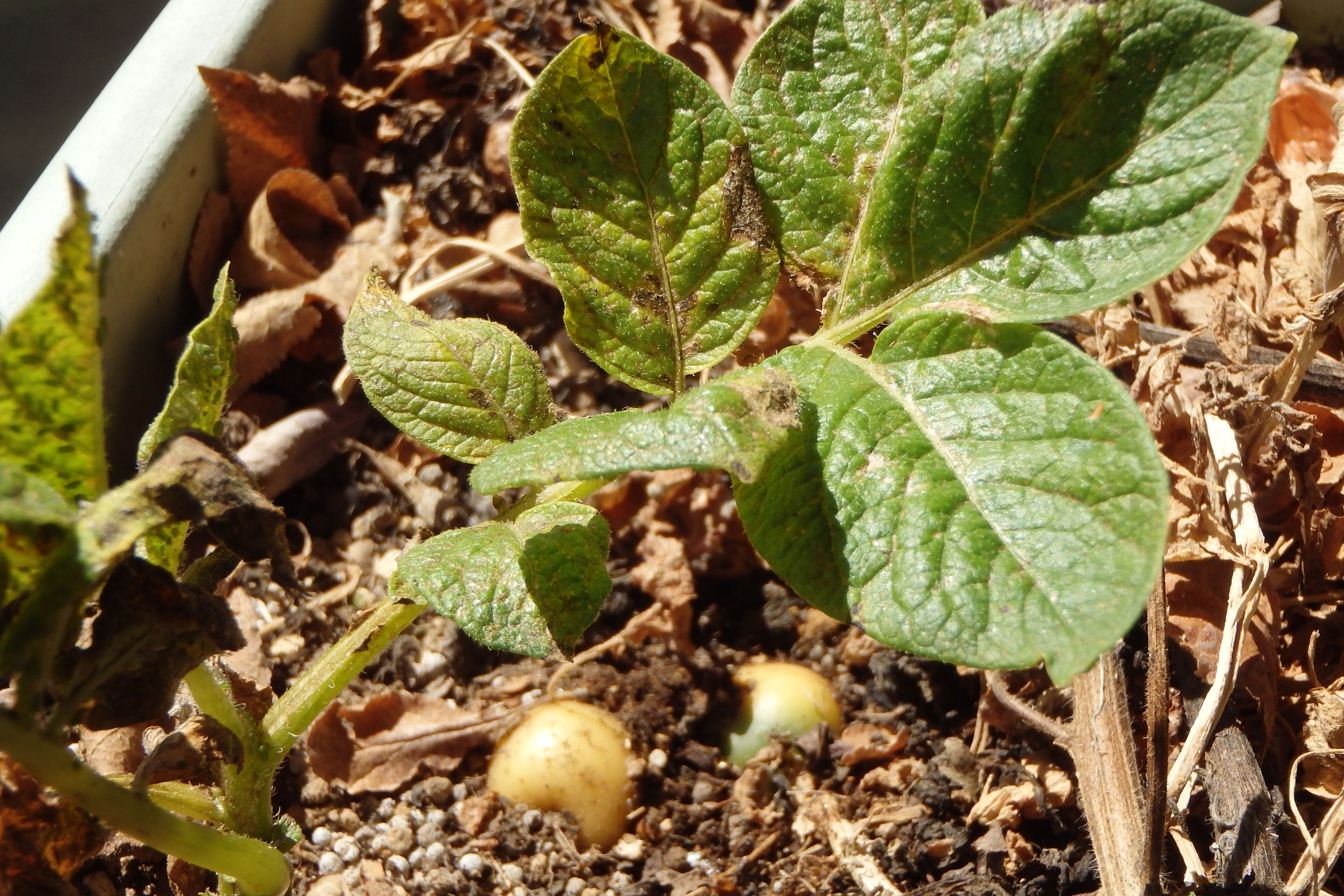 芽の出てしまったジャガイモを植えておいたプランター、