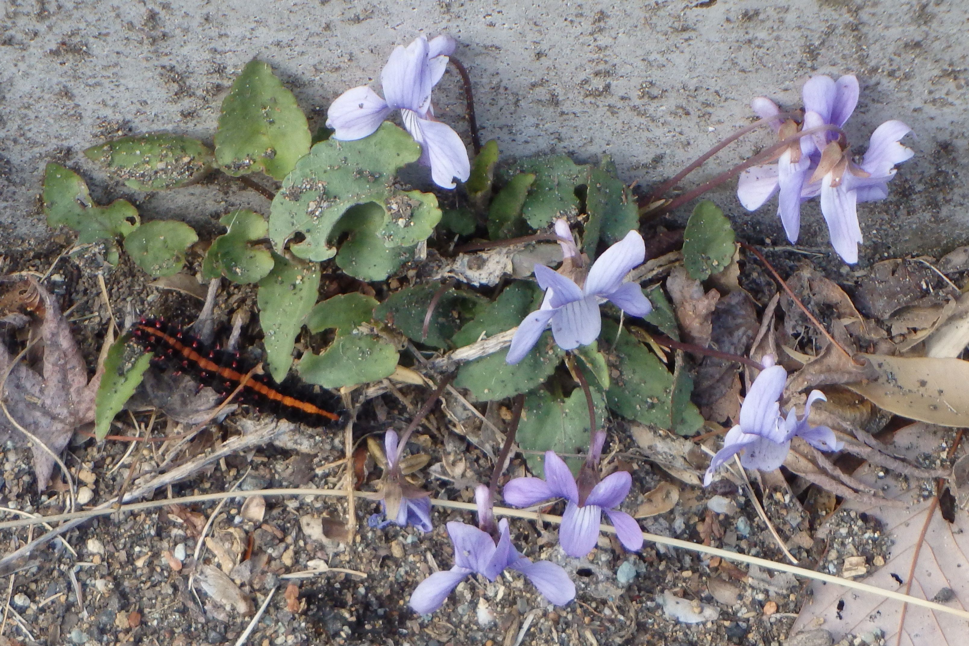 スミレの近くにいるのは蝶の幼虫?