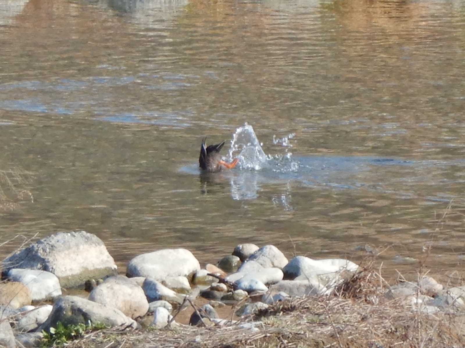 カモは水に潜って、
