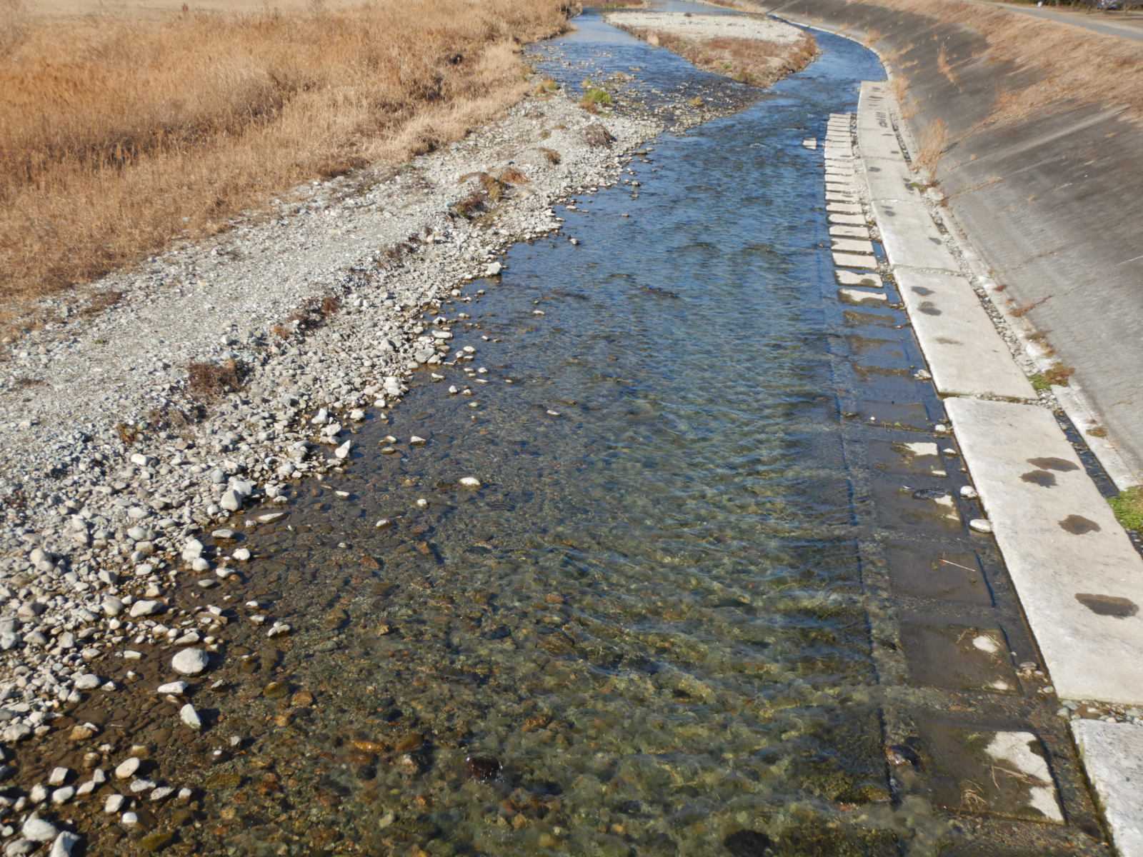 雨も雪もほとんど降っていないので那珂川支流のさび川もかなり減水してきました。