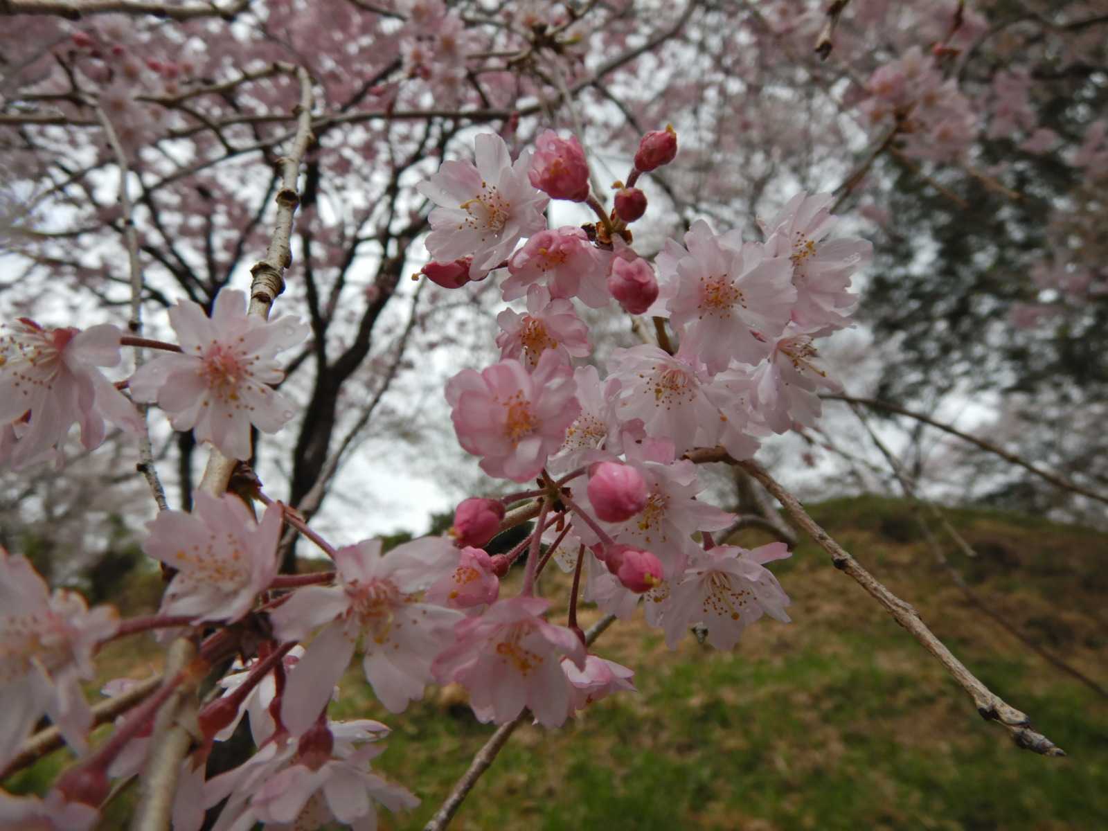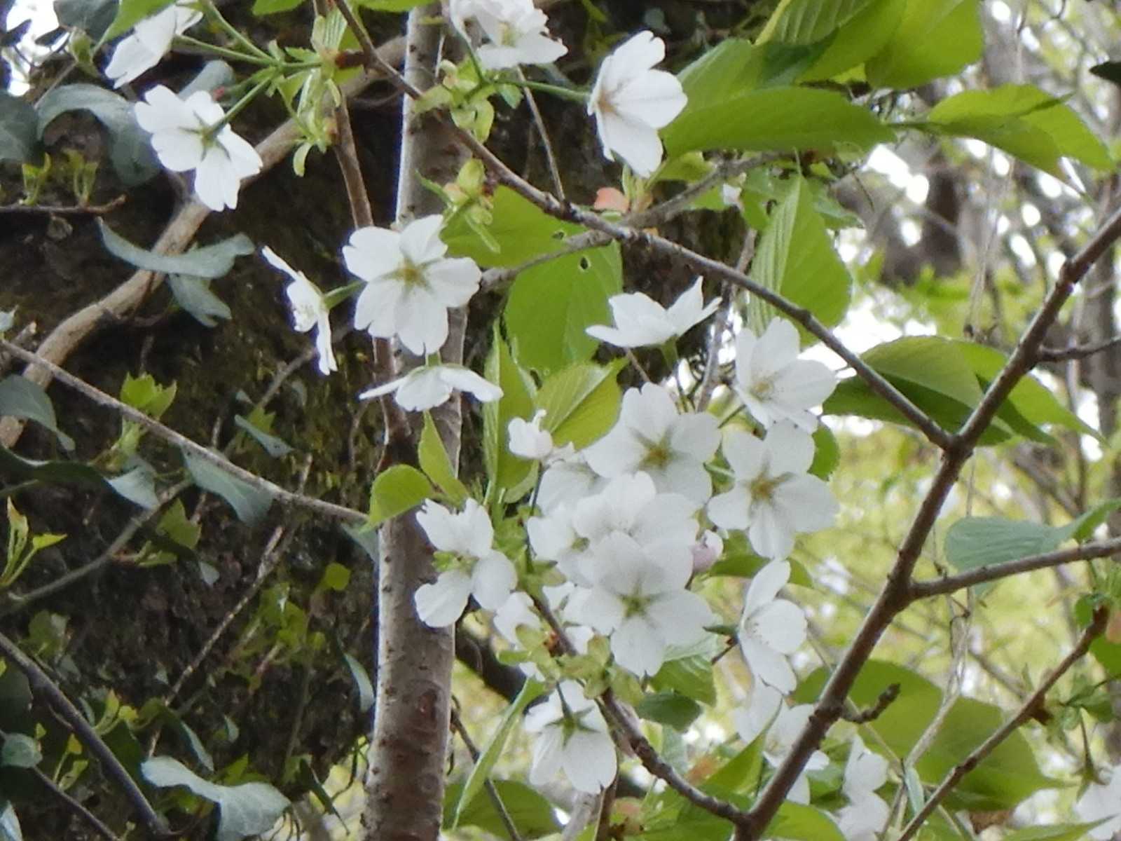 白い花の桜も今が盛りのようです。何と言う種類のサクラでしょうか、葉も茂っています。