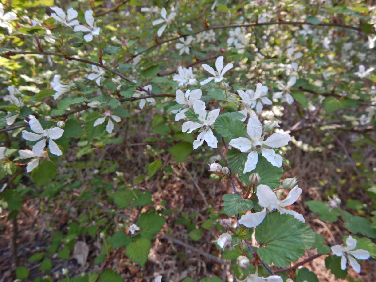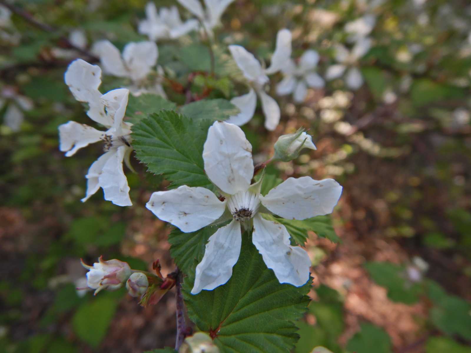 モミジイチゴの花は下向きに咲きますが、ニガイチゴの花は上向きに咲きます。