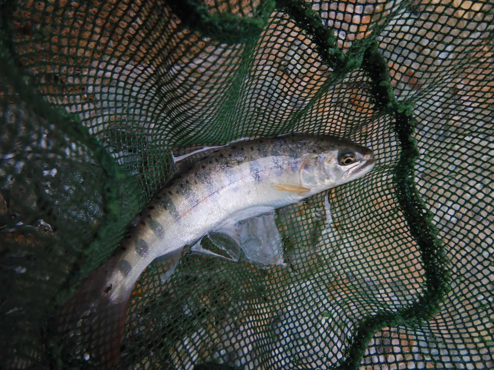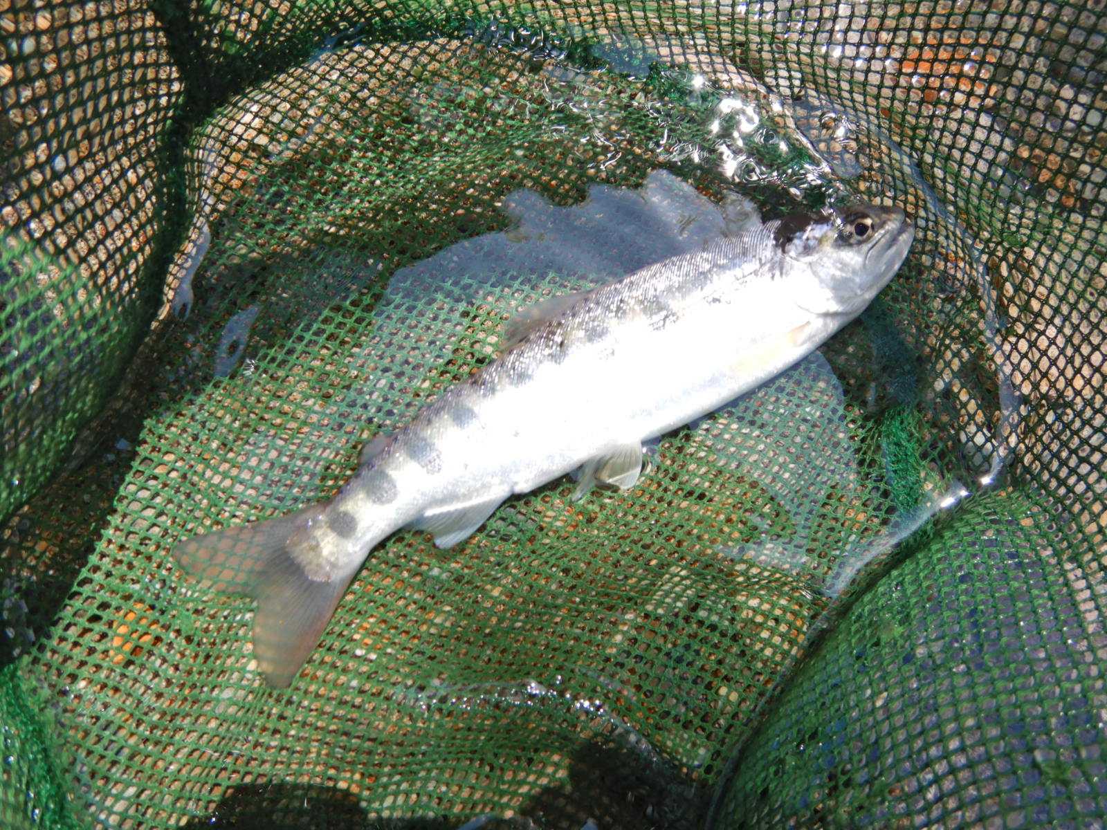 コツコツとくるのですが掛かりません。餌を変えるとヤマメがきました。