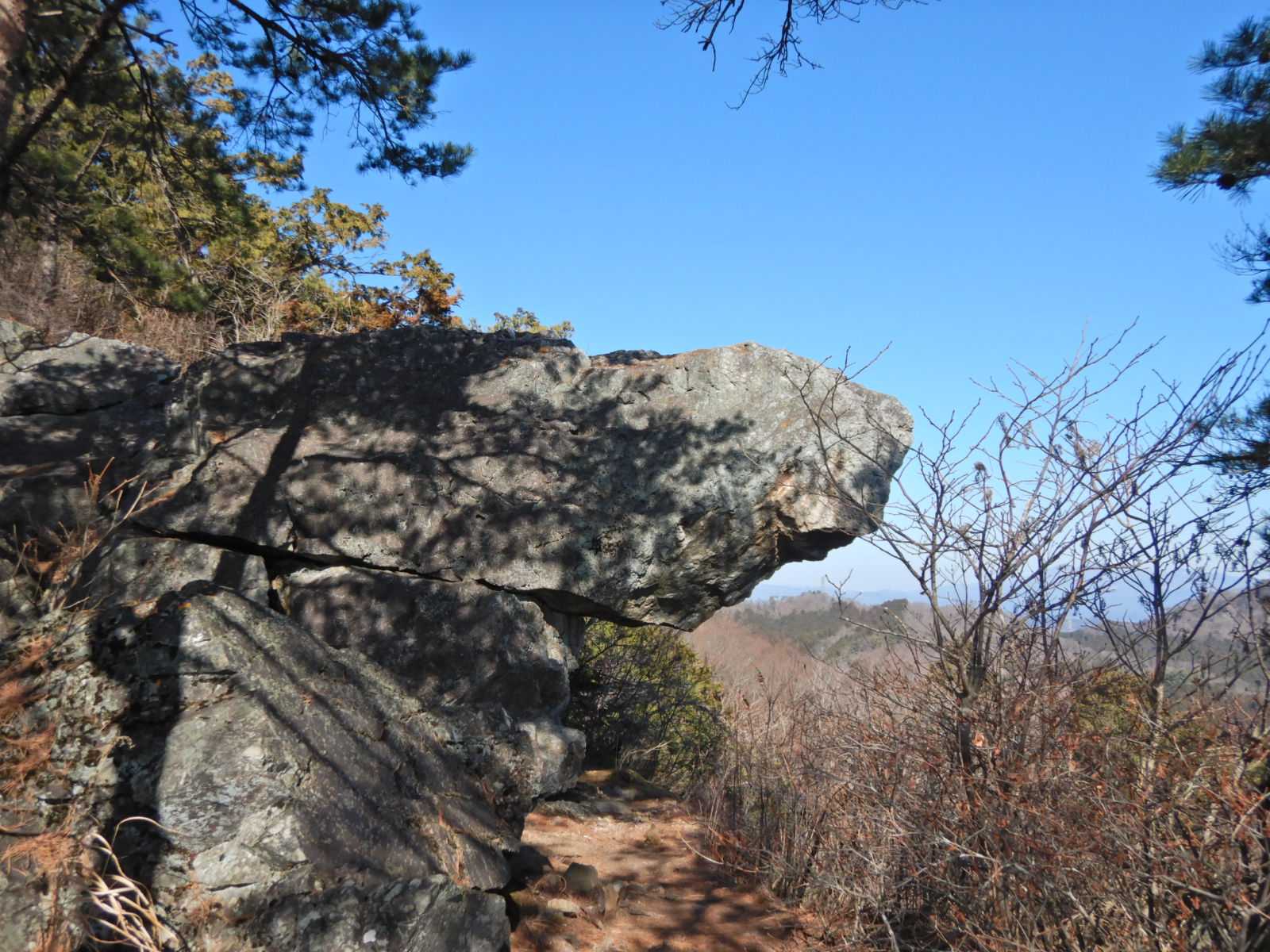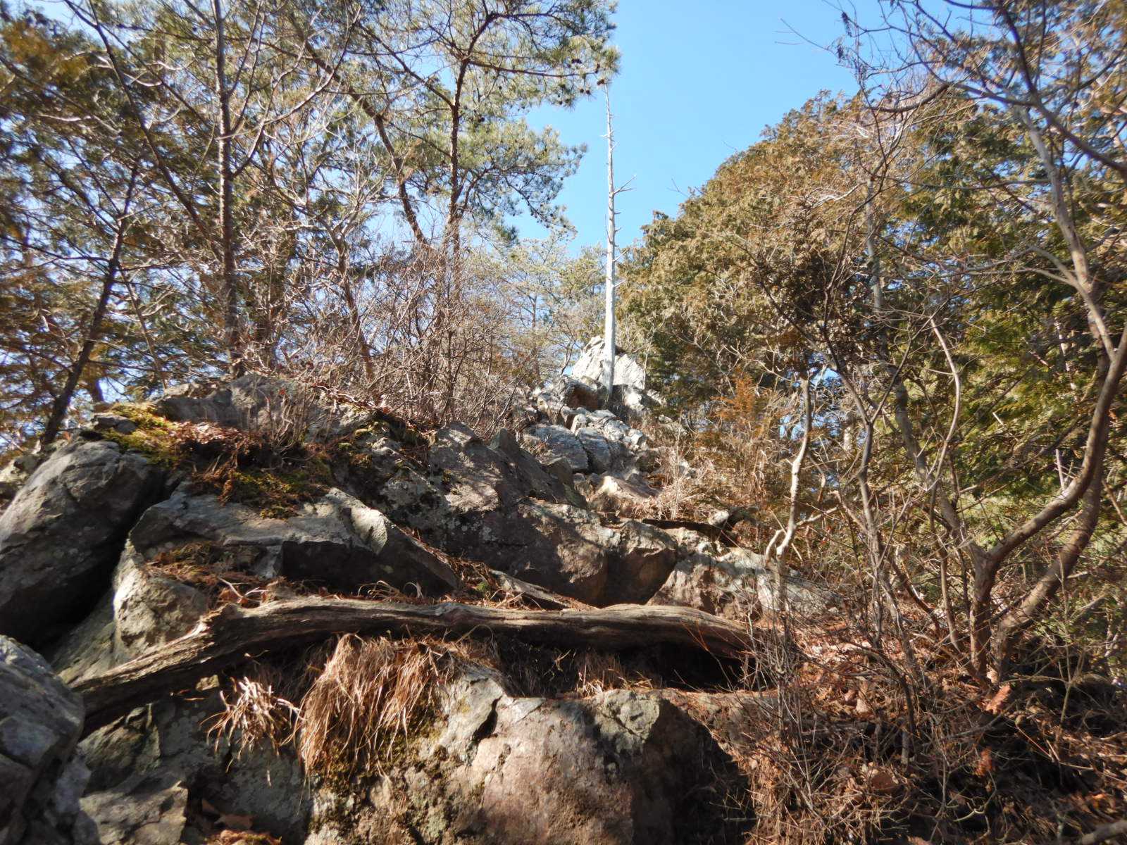 ゴツゴツした岩とアップダウン、標高が上がるにつれて宇都宮市街や鹿沼市街が見えてくるが霞んでいる。