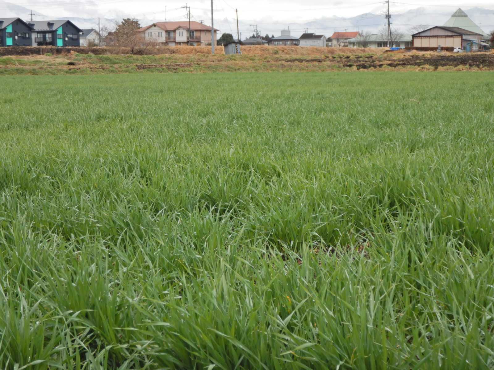 麦畑は青々として10㎝くらいに伸びています。