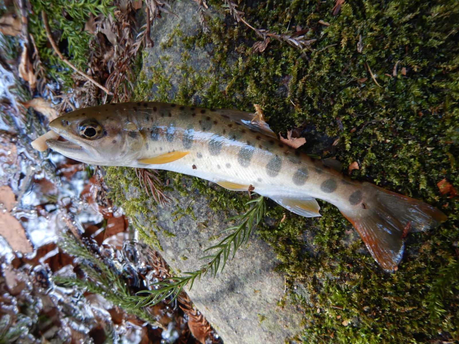 指物差しで測ってみると16㎝くらい、この沢の水量ではおそらくこのくらいにしか育たないでしょう。サビはありませんが痩せているのは水量のせいかもしれません。