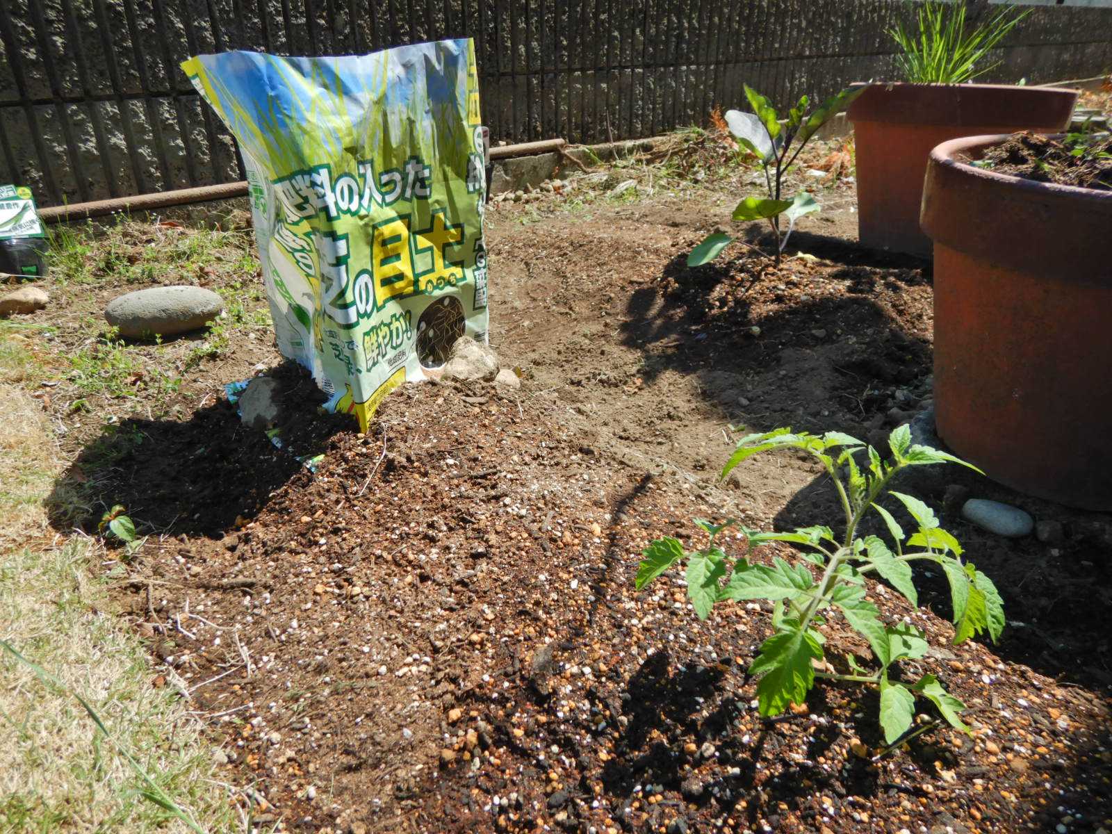 天気予報を見るとこれから先は朝の気温が10℃以下になることはないようなので、野菜苗を植えました。