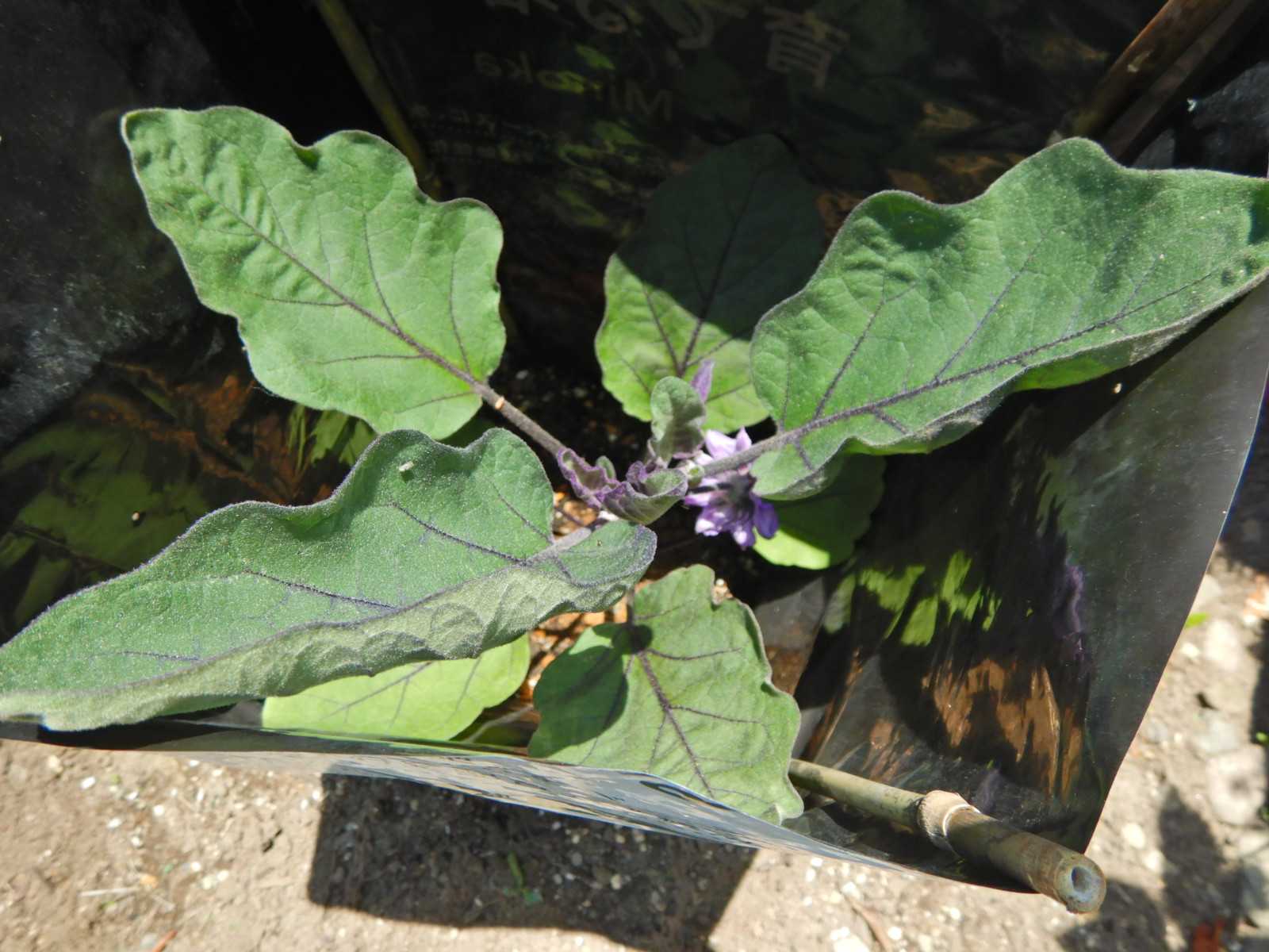 すでに花をつけていますがナスも寒さには弱いそうです。