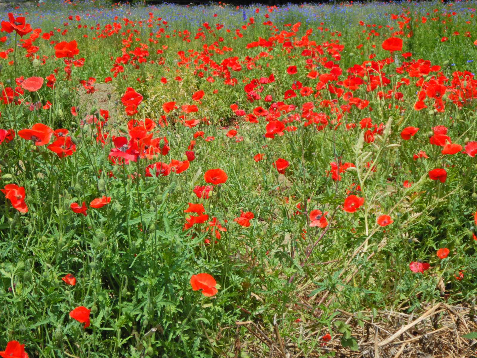 鮮やかに赤く咲いているケシの花。