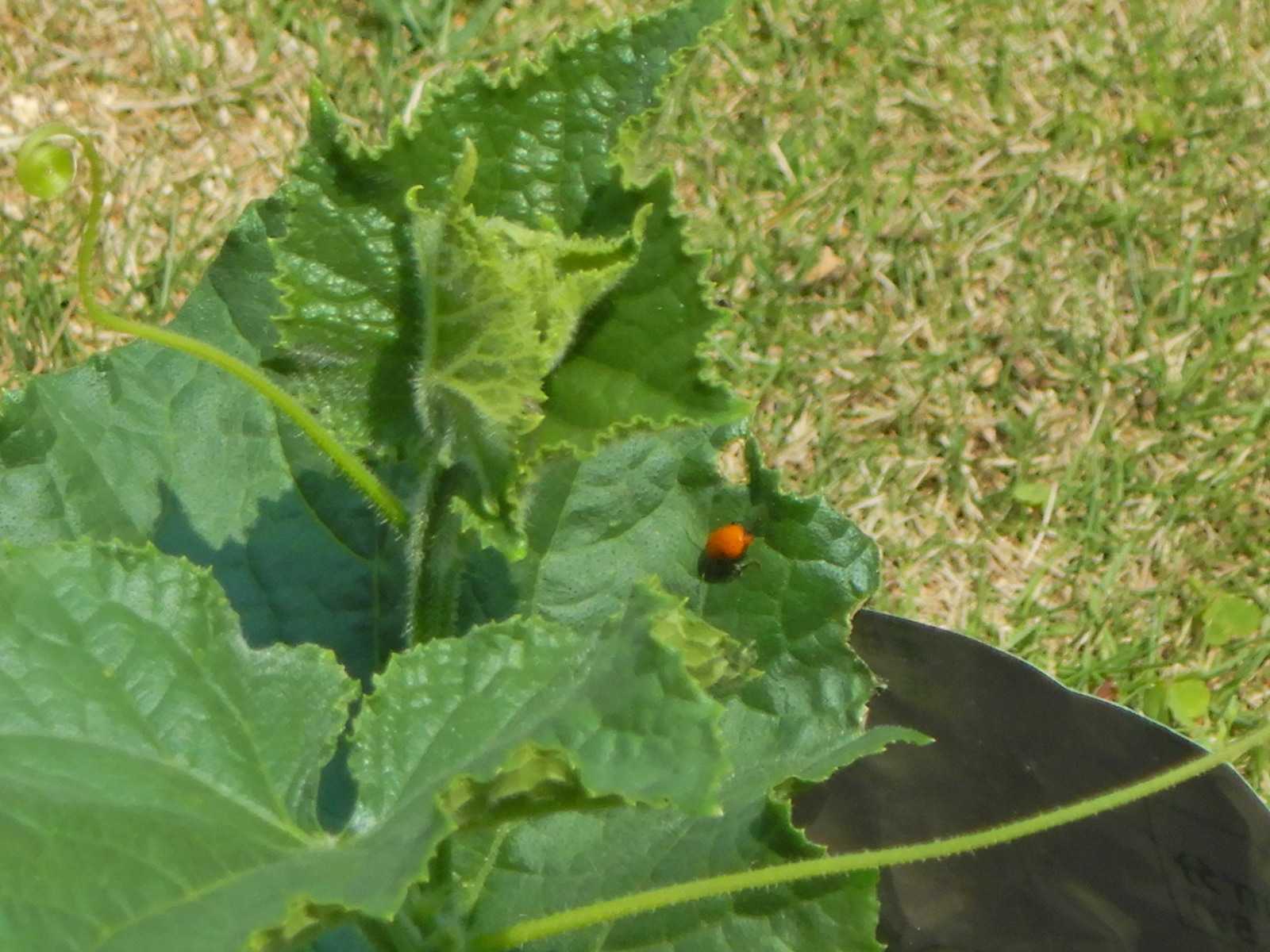 昨日、2匹潰したウリハムシが今日もきています。