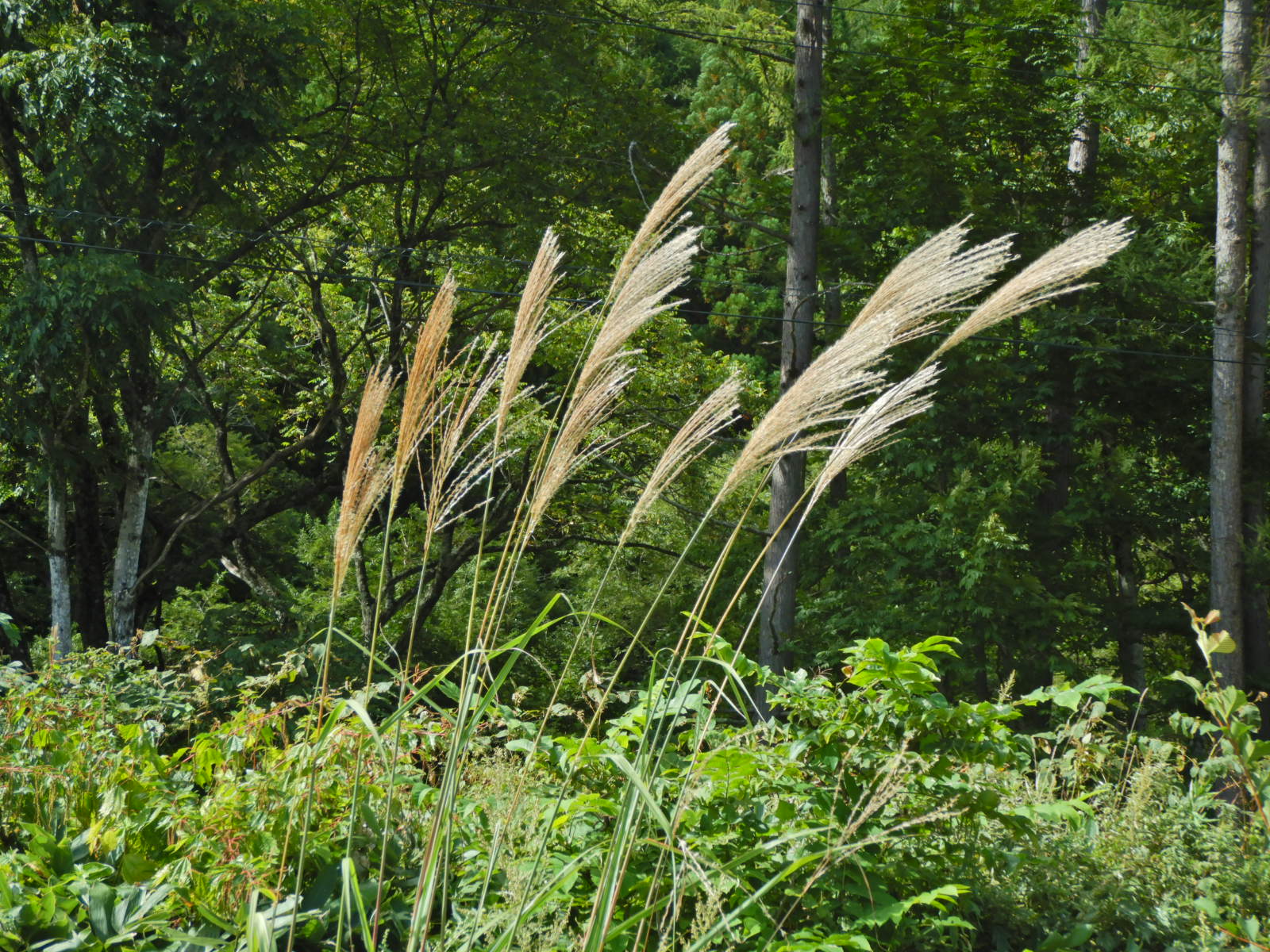ススキの穂、山は一足先に秋の花が咲いています。