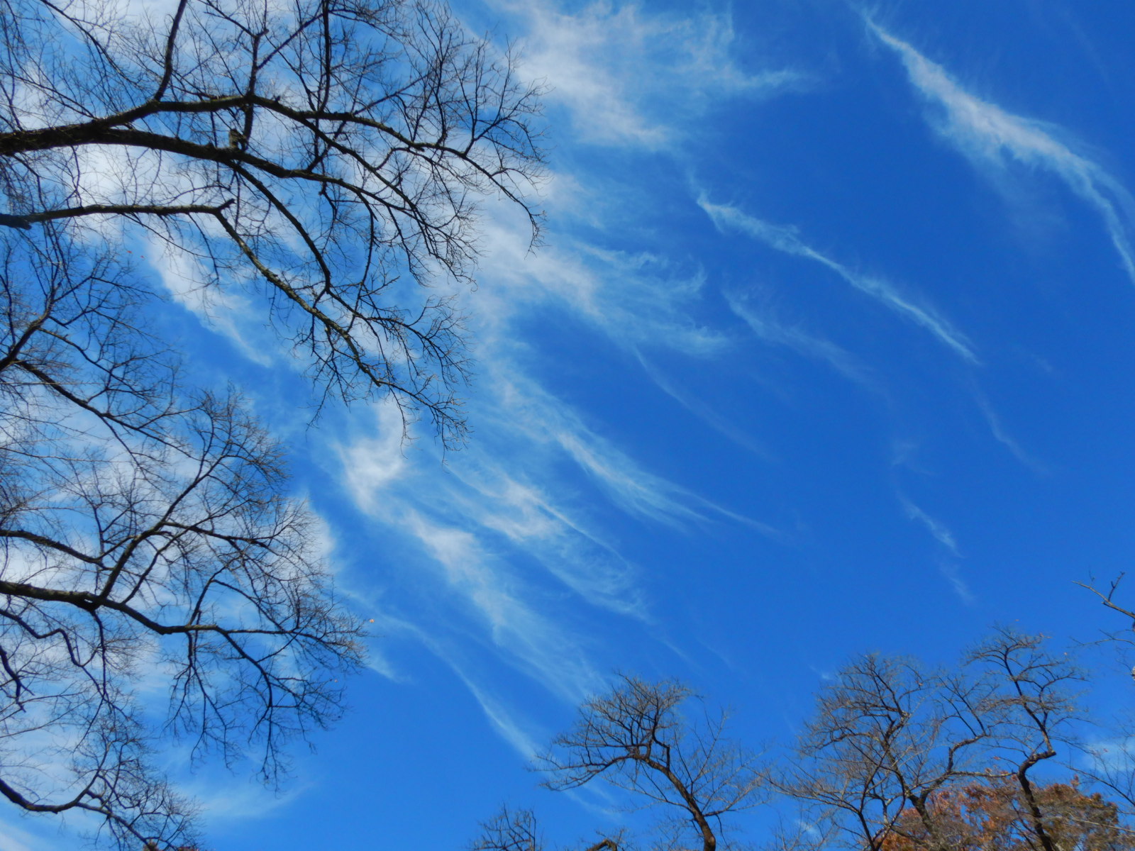 見上げれば葉を落とした桜の梢の向こうに絹雲です。
