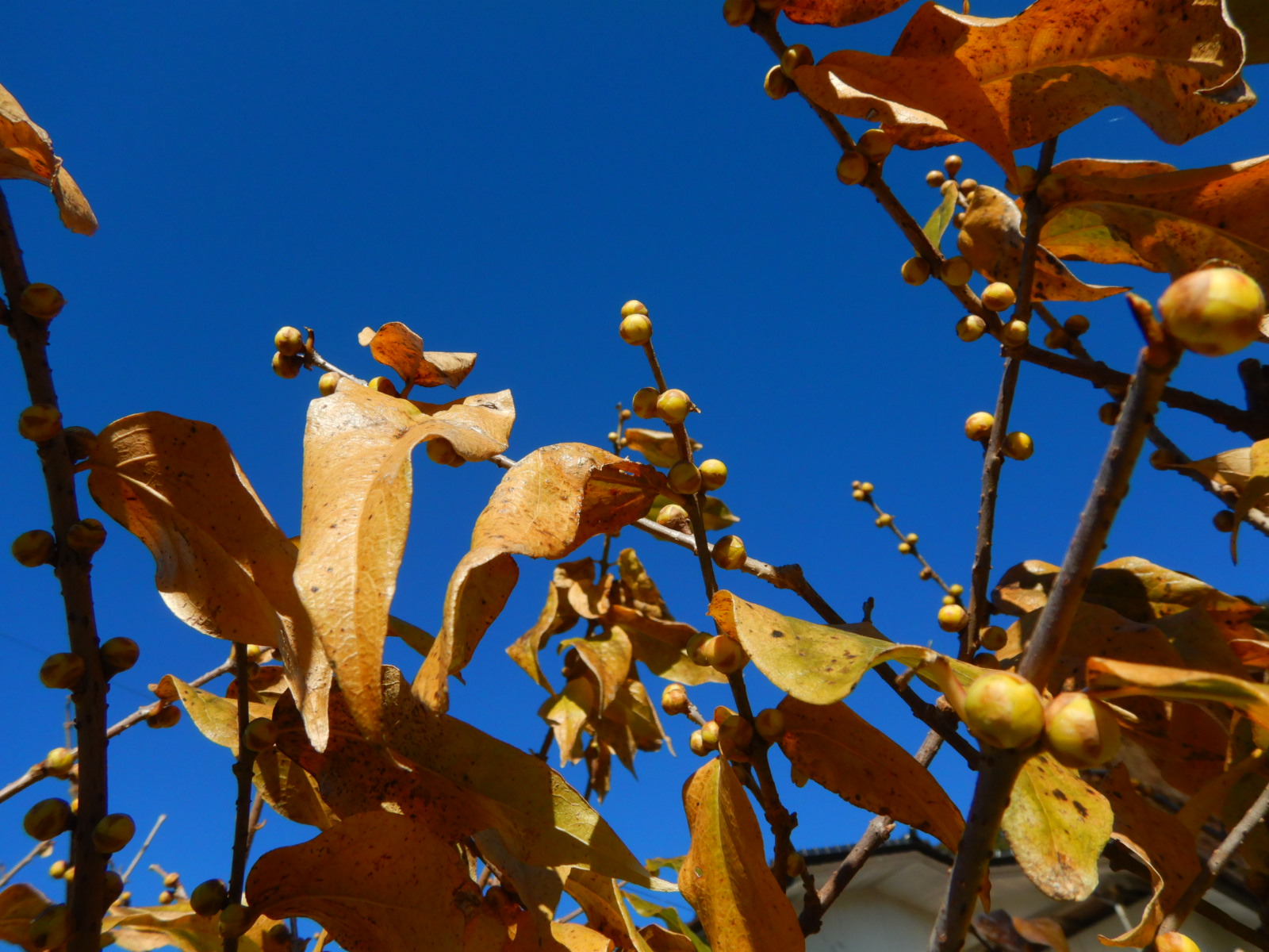 ロウバイは蕾を膨らませて咲く時を待っています。