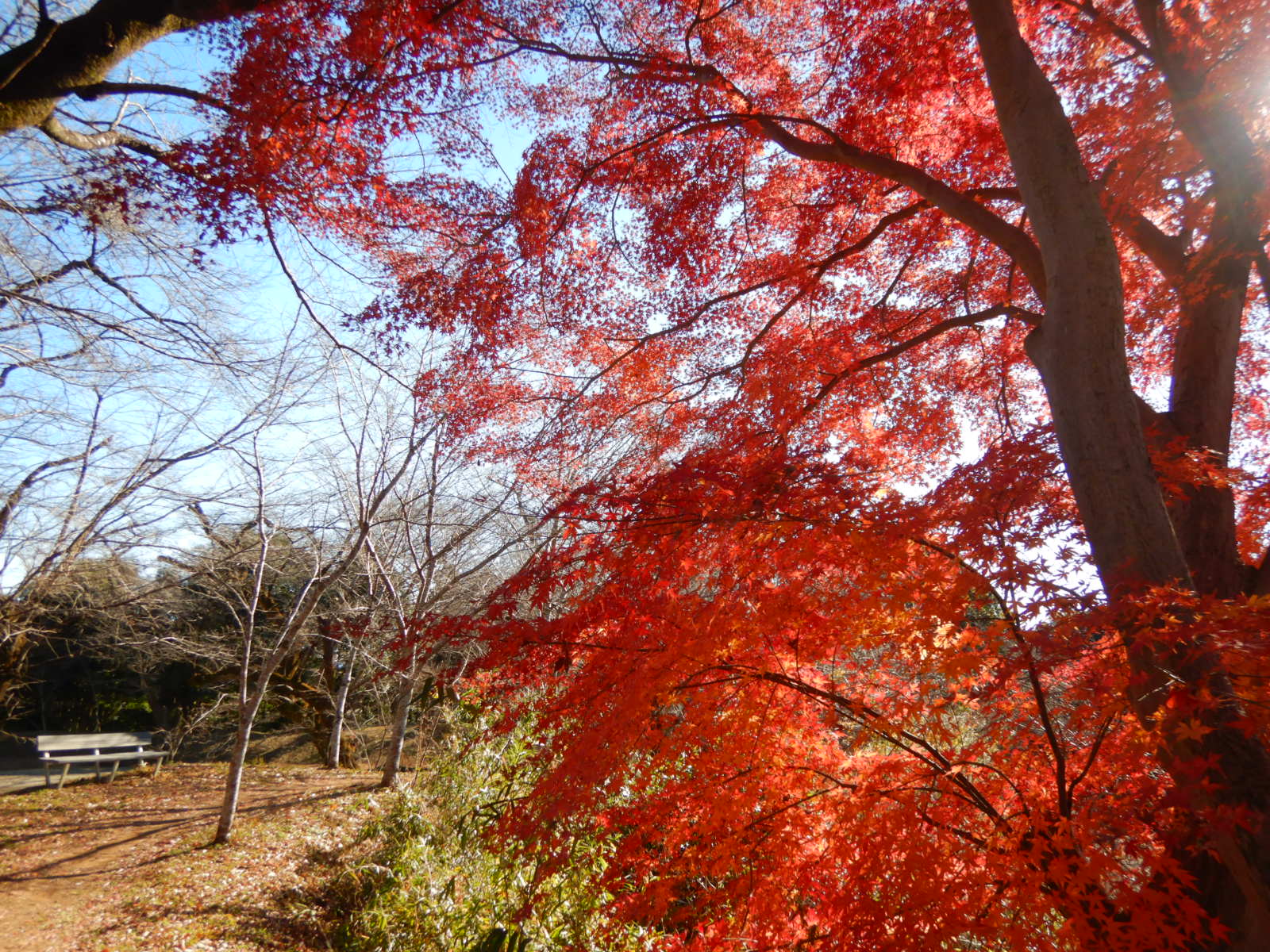 今日は12月16日、城山で最後に赤くなるカエデが見頃です。