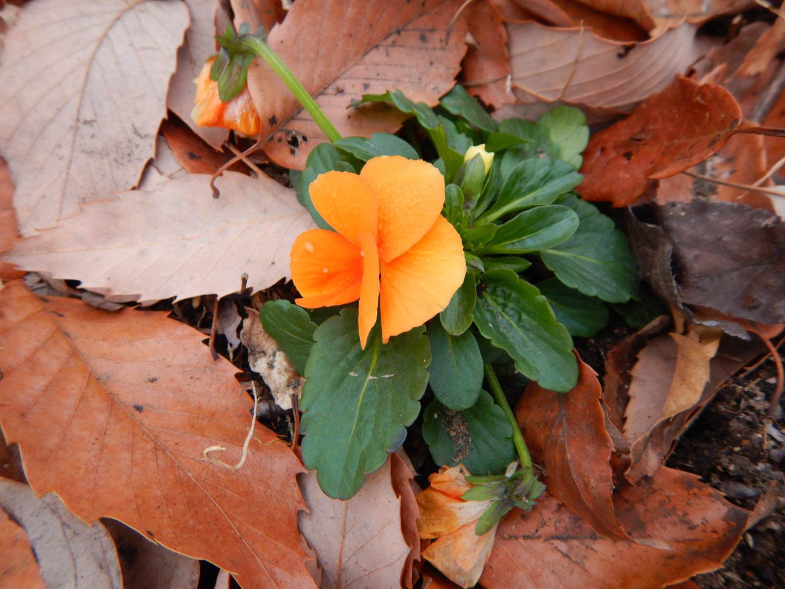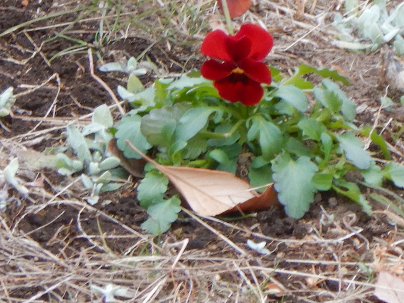 ヨーロッパ生まれのパンジーもスミレ属、花期は秋から春までと長く咲いています。