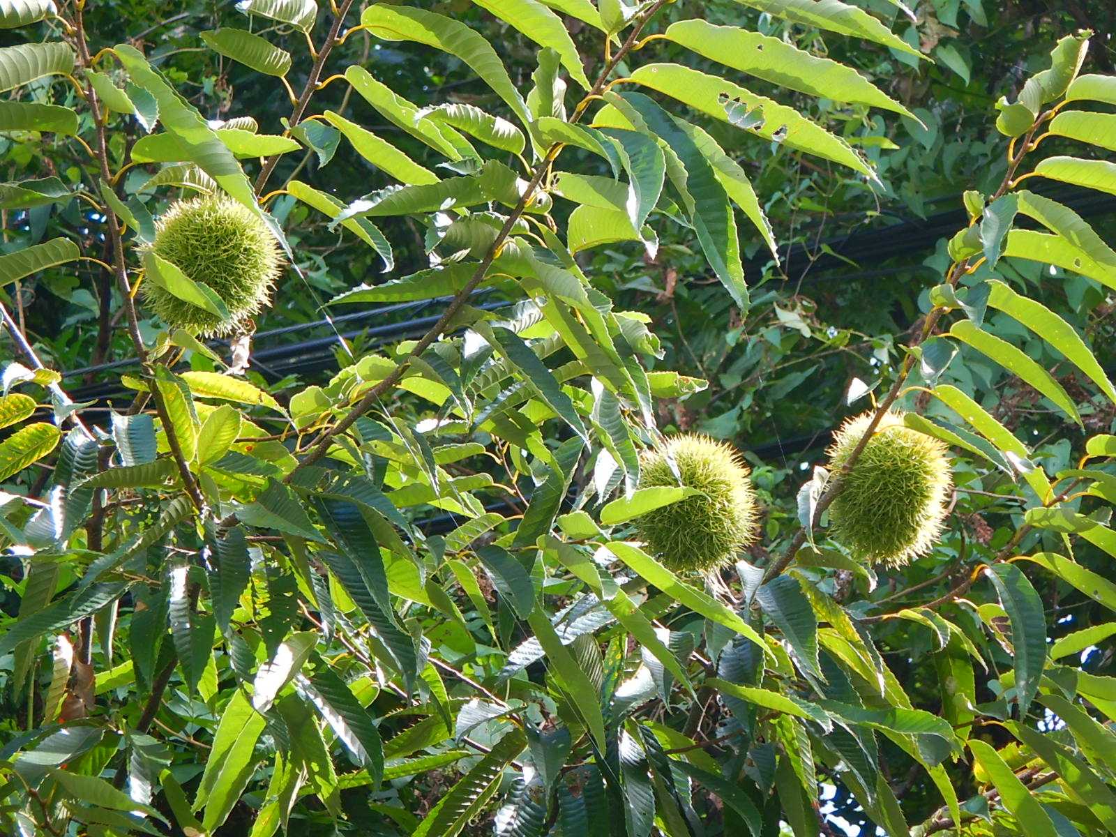 歩道の頭上の栗も大きくなっています。