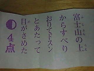 富士山の上からすべりおりてドスンとあたって目がさめた  4点