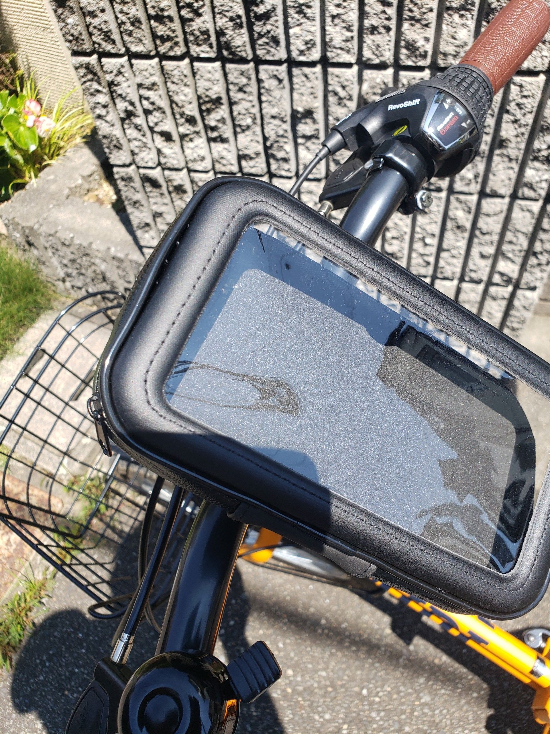 本日届いたので、通勤用の自転車に早速取り付けてみました🎵 Lサイズを購入、スマホケースを付けたままでも入るのか気になっておりましたが、 楽勝でした。 また中でスマホが遊ばないかも心配でしたが、大丈夫❗ 厚みの違うクッション材が二枚入っていて、スマホと併せて入れることで調整が可能です。 ジャストフィットしてくれました🎵 いいものでした、はいっ。 自転車用スマホホルダー 防水 自転車 バイク スマホ ホルダー 携帯ホルダー ロードバイク 360度回転 日本郵便送料無料 K250-172/200/210