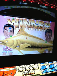 「僕と一緒に踊りませんか?」この日は女性への接し方を学ぶため、今更誰も手をつけないであろう「梅松ダイナマイトウェーブ」をスロ仲間の轟さんと一緒に打ってきました。(↑釣っちゃうよ)あちぃ~、世界を釣る男達(・∀・)イベントは、有名スロ漫画家のトンちゃんお気に入りのKG店「全台対象の設定6を70台以上投入」というもの。梅松は名機復活で導入されたばかり。ホントはネタになればいいかなぁと、爆死覚悟なんだけど(=∀=;そんじゃ、やっちゃいますか(=∀=)/・・・・・・(-ω-)コイツら、全然釣らない&フラレまくりじゃん!!んなわけで、しょっぱなから3万死亡(T∀T)なんとか引いたBIGで、BIG中にチェリー引いて、天国モードへ。(↑BIG中チェリー)<備考>※天国モード昇格フラグのトータル確率設定1 1/163.1設定2 1/163.1設定3 1/163.1設定4 1/164.7設定5 1/172.9設定6 1/180.0ここからBR5連して1箱カチ盛り♪(↑ふっかーつ)ふっかーつ・・・といきたいトコだけど、なんか打ってて現実に戻った俺。実際こいつらって全然釣れてないんだっけ(爆)ゾーン抜けでヤメましたm(__)m轟さんは 1/1500 ほどのBIG中のハズレなんか引いたりして、ほとんどBIGで天国ループ20連!(↑BIG中ハズレ)万枚まであと一歩の9800枚おめでとぅ(=ω=)bこの人のヒキは強いんだか弱いんだか・・・(=ω=;<この日の稼動内容>@カイジ朝イチで設定6&リセット狙いもHITせず。投資:8K、交換:0枚、収支:-8.0K@押忍!番長すぐさまチャンス目解除も、天国飛ばず。投資:2K、交換:289枚、収支:+3.5K@梅松ダイナマイトウェーブBIG中のチェリー絡めて5連も若干マイナス。投資:30K、交換:1367枚、収支:-3.0K@巨人の星2ノーボーナス 400G ほどの台で開始。1Kでリプ4連するも、特訓なしのREG単・・・orz投資:5K、交換:0枚、収支:-5.0K@ゴルゴ13 ザ・プロフェッショナル未練打ち。回らないからやっぱヤメ。投資:3K、交換:0枚、収支:-3.0Kトータル:-15.5K教訓:女性も釣りも難しい-15.5K