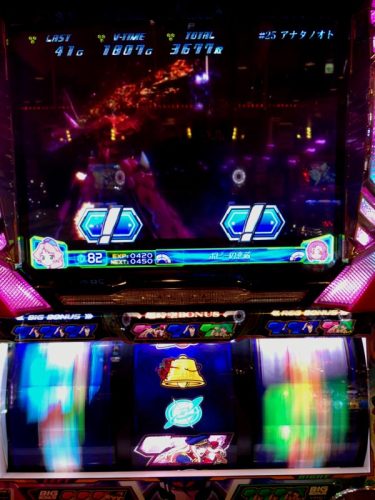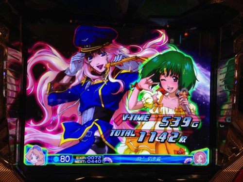 HP店5スロにて、嫁と一緒に「マクロスF」。