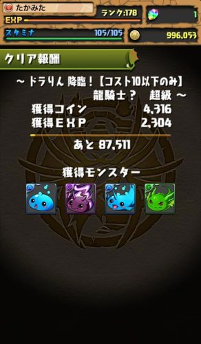 時間はかかったけど、運の良いことにドラりん1発ドロップ♪
