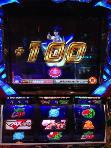 HP店5スロにて、嫁と一緒に「マクロスF」。