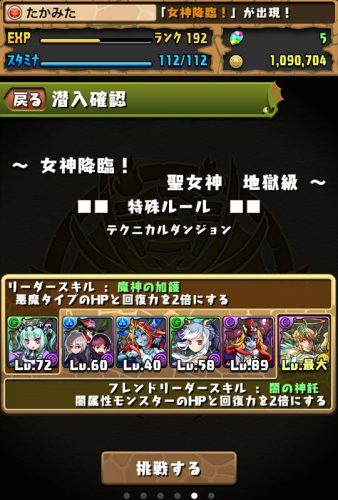 ヘライースを集中的に育てあげ、万全を期して女神降臨へ挑戦!!