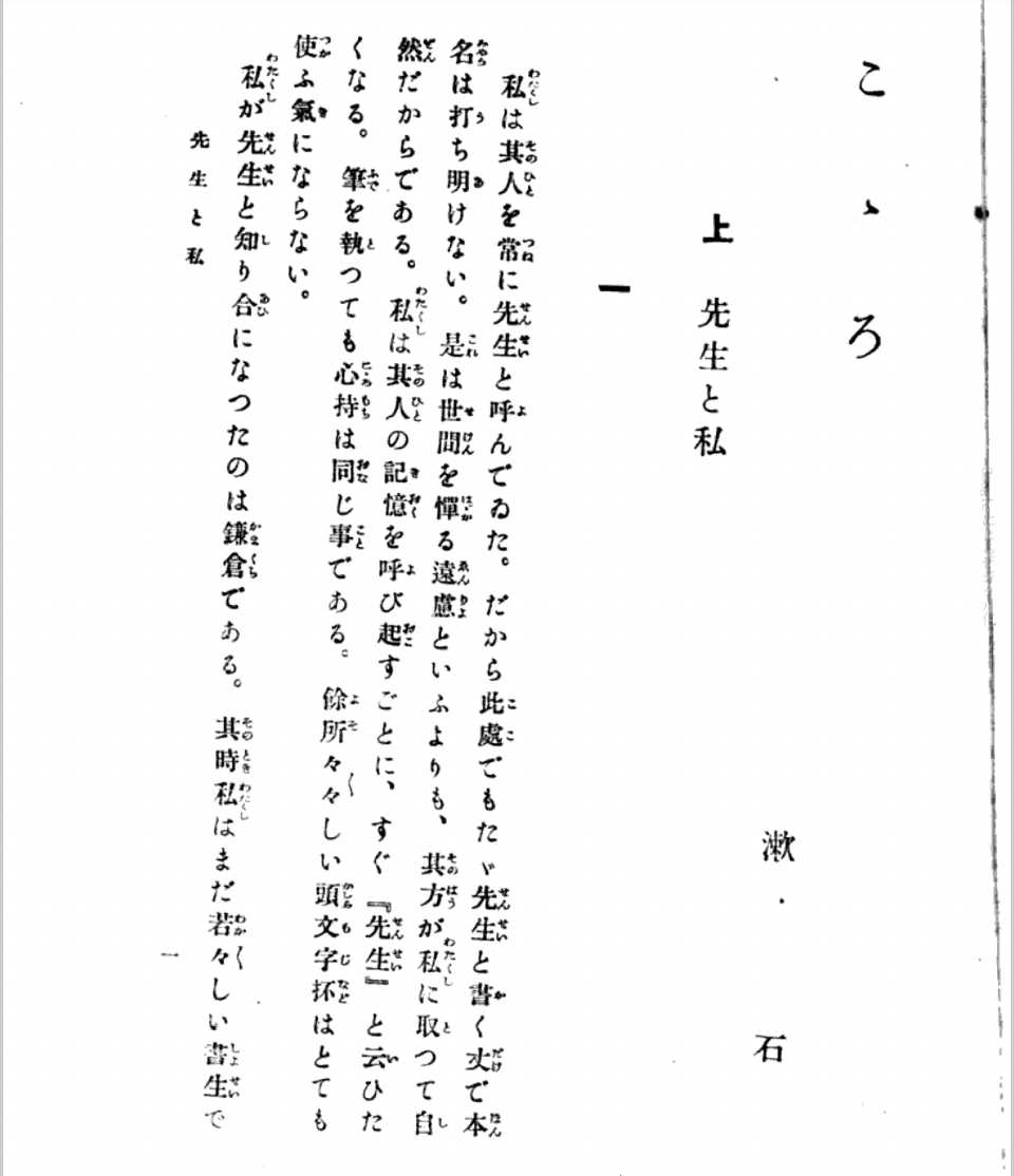 ひとりの純な青年があるとき、ひょんな事からひとりの紳士と近づきになり先生と呼ぶようになりましたこの呼び方からこの紳士への青年の気持が分かりますなんの利害関係もないふたりは次第に心を許すようになりますが先生には何か見せたがらないものが有りますそれがなんなのか先生の奥さんも知らされていません先生と青年の間には次第に信頼の気持ちが深まり立ち入った話題も話されますが先生を苦しめているらしいひとつのことは秘密ですこの痛ましい先生のこころの傷が明かされるとき敬愛する先生は,もう居ません辛くても,繰り返し読まずには居られない名作です