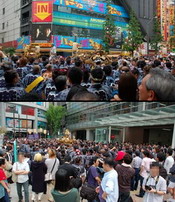 先週は神田祭、今週は三社祭と祭りづいている最近の東京です。負けずにアキバもお祭りと行きましょう。 5月20日の秋葉原のホコ天は、久しぶりの賑わいでした。ストリートライブもかなりの数見ることが出来、結構充実した日でした。 この日のホコ天でのストリートは、比較的末広町寄りで行われてたのが特徴。なのでいつものドンキホーテ前が閑散としていたりしました。有希さん(左)もずいぶん末広町寄りで歌ってます。7月28日に秋葉原dressTOKYOで次のワンマンライブが決まりました。Little Nonのノゾミさん(中左)もホコ天でオケで歌ってから夜はヨドバシ前でバンド演奏がありました。6月24日に秋葉原CLUB GOODMANの「AKIBA Fes Z~メイド愛、宇宙~」に出演します。朝倉さくらさん(中右)もホコ天で歌ってます。5月22日に秋葉原dressTOKYO「GIRLS=DRESS」に出演します。永井 渚さん(右)もホコ天でライブしてます。七川礼位さん(左)はホコ天とヨドバシ前の両方で歌ってるのを見れました。6月3日の秋葉原dressTOKYOに出演します。Saori@destinyさん(中)もホコ天の末広町寄りで歌ってます。ホコ天で歌うのは初めてだそうです。6月10日と7月14日にライブがあります。 ここからはヨドバシ側のストリートになります。A'sh Doll(右)は中央改札出口近くでライブしてます。5月28日に下北沢MOSAiCに出演します。崎谷来未さん(左)がこんなに早い時間に来たのはびっくりしました。5月27日に「VANQUISH」Vo.として秋葉原dressTOKYOでライブがあります。その「VANQUISH」のDr.ガーベラピューロさん(中左)も一緒に歌ってます。小比類巻里澄さん(中右)も同じ時刻に近くで歌ってます。5月23日に登戸STARGICROOMでライブがあります。9月1日にワンマンも決定です。岡村淳子さん(右)も中央改札出口近くでライブです。 左の彼女は森山花奈さん。5月25日に1stDVD「ハツカナ」が発売になります。で、そのDVDに楽曲提供しているのがくまぎた ふみおさん(中)。この日は電気街口でフライヤーを配ってからヨドバシ前で二人のデュエットが聞けました。5月27日に石丸電気ゲームワンでDVD発売記念イベントが開催されます。みーこさん(右)もキーボードでライブしてます。5月23日に登戸STARGICROOMに出演します。ブラウンコースト(左)もスモーカーズスタイル前でライブしてます。ウェストコースト系の曲を中心に歌っています。ネガポジ(右)もその近くでライブしてます。秋葉原初登場だそうです。6月10日に渋谷GUILTYに出演します。日向さおりさん(左)も中央改札出口で歌ってます。次回のストリートは6月頭に都内で予定してるそうです。RaM(中)はバスターミナルでライブしてます。5月26日に秋葉原dressTOKYOに出演します。STIL(右)もその近くで歌ってます。6月3日に渋谷TaU KITCHENに出演します。Lemmy Crisisはこの日も愛子さんがソロで歌ってからバンドでライブです(左・中)。5月26日は三倉愛子さんのソロライブ、6月10日はバンドで六本木モーフ出演です。中野アニソン燃/萌ギター研究所(右)は自由通路出口でライブしてます。 栃木県から来たNAiL(左)です。CDなどがサイトで購入できます。トレイルブレイジングオブシンフォニア(右)もバスターミナルでライブしてます。5月26日に東京ビッグサイトのデザインフェスタに出演します。monbijouさん(左)はオアシス@AKIBAの隣で歌ってます。5月26日に秋葉原dressTOKYOに出演です。UZUMEさん(中左)も中央改札出口で歌ってます。5月27日にライブがあるそうです(詳細未定)。林 華鈴さん(中右)も近くで歌ってます。6月3日にミハマニューポートリゾートでライブがあります。カミタミカさん(右)は奥のマクドナルド近くで歌ってます。日本テレビ「歌スタ!!」でメジャーデビューしました。初秋葉原だそうです。流香(左)は場所に恵まれず、ガード下でライブしてます。最近は場所取りも大変です。Fly AT Zero(中)は中央改札出口でライブです。5月30日に渋谷DESEO出演です。木ノ下ゆりさん(右)は今日もTX階段前で魔法少女系を歌ってます。5月26日にあさがやドラムに出演です。水地こはるさん(左)もTX階段前で歌ってます。7月29日は千葉Jump Upでソロライブです。5月22日は四谷ライブインマジックに出演します。千原愛理さん(中左)は水地さんと交代で歌ってます。5月27日に千葉 Jump Upに出演します。Raimの二人(中右・右)もその近くでライブしてます。 それにしても、この日のヨドバシ前もすごいライブラッシュでした。 正直すべてを紹介することなんて出来ません。看板の無い方は割愛させてもらいました。これだけライブを見れてうれしいことは嬉しいんだけど、これが毎週続くとしんどいですねぇ。まだ出演者は増えるのだろうか?続きはまた次週。